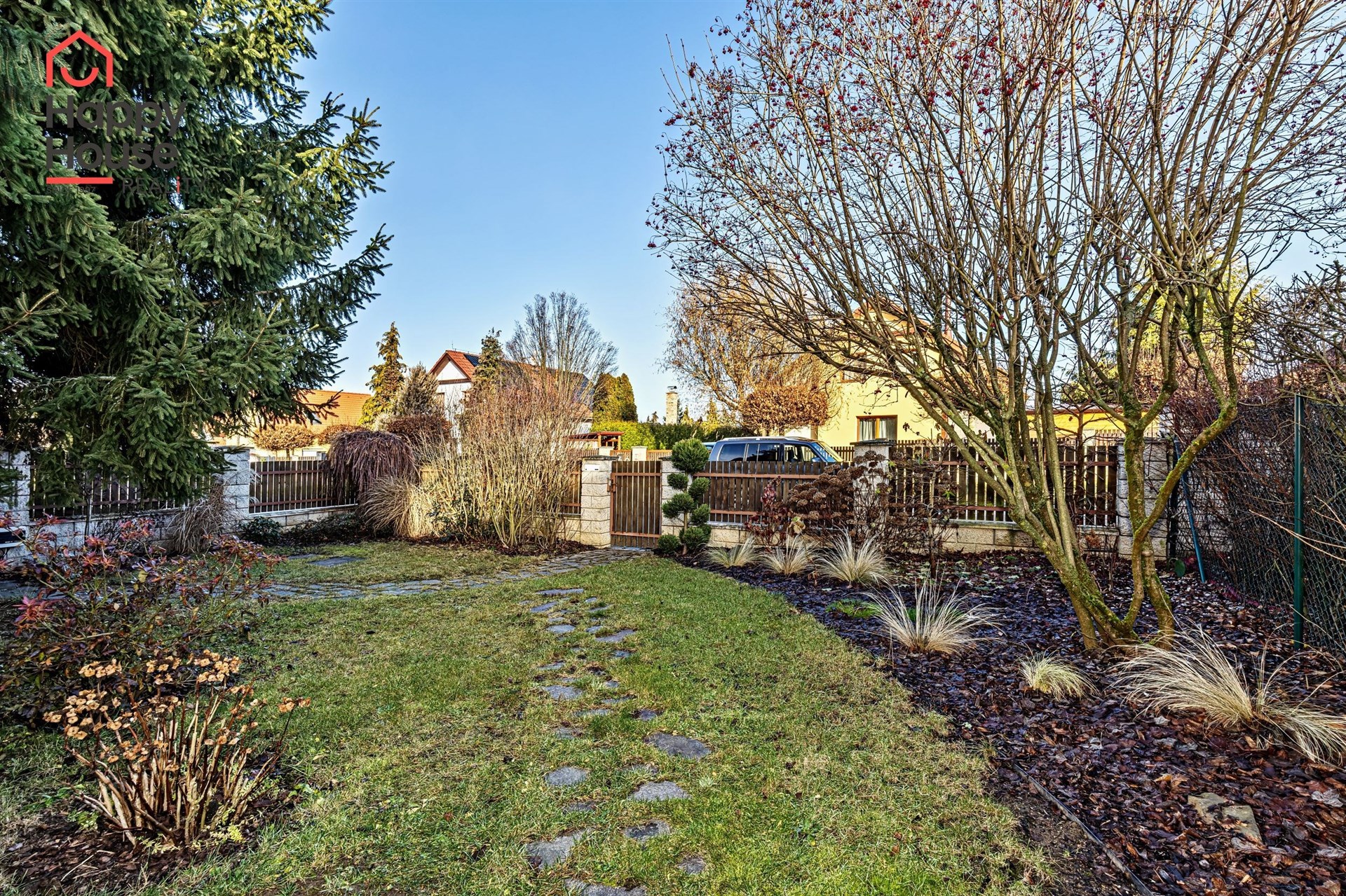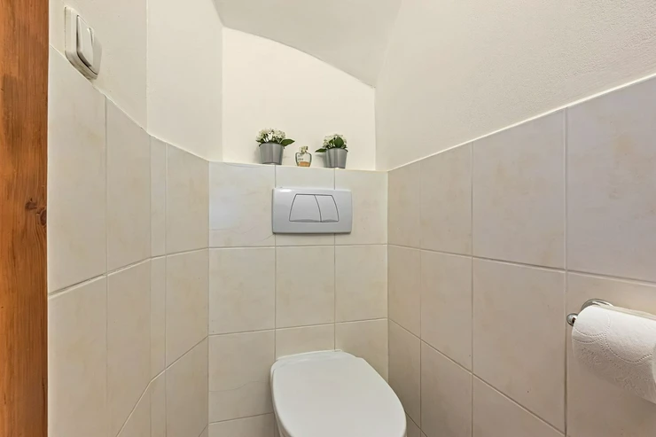 A bus stop for three bus lines about 300 m from the house and then a maximum of 30 min. ride to Budějovická metro station (red line C). Nearby, there is also the extensive Průhonice Park, tennis courts, and a golf driving range. Within a 10 min. drive is Aquapalace Čestlice. Basic amenities are available in nearby Jesenice or Průhonice. Within a 10-minute drive from the house are Čestlice shopping center, metro C stations Chodov or Opatov. Also, very good commuting distance within max. 10 min is the Sunny Canadian international school/kindergarten located in Zdiměřice. Nearby are the International Montessori schools in Roztyly, the prestigious English school PBIS in Libuš / Kamýk in Prague 4 about 15 min. drive.