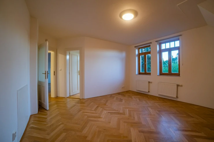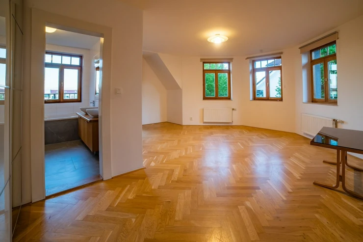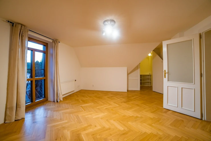 We offer for rent a luxurious, unfurnished six bedroom family house with a garden, located in a prestigious residential area of Prague 6 – Nebušice, just a few steps from the International School of Prague (ISP). The house has a total area of 250 sqm. The ground floor features an entrance hall, a fully equipped kitchen with a dining area, a spacious living room with a fireplace and direct access to the terrace and garden, a study, and a separate toilet. On the first floor, there are 3 bedrooms and 2 bathrooms with toilets. The second floor offers an additional 2 bedrooms and 1 bathroom with a toilet.