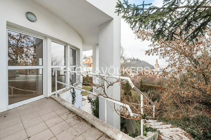 An exceptional villa is now available for rent in one of the quietest residential areas of Smíchov, in the immediate vicinity of Prokopské Údolí Nature Park. The property offers a high standard of living, maximum privacy, and beautiful views of the Prague skyline and Vyšehrad. The house also features a relaxation area with an indoor pool and sauna, providing the ideal space for rest and rejuvenation.