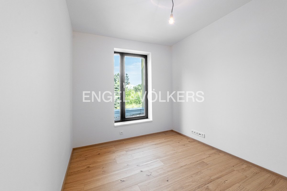 An elegant 5+kt villa with an area of 146 sqm, a garden, and parking for two cars is ready for move-in in the peaceful area of Klánovice.