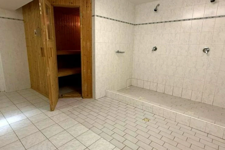 In the basement, there is a guest room of 20 sqm with a dressing room of 13 sqm and a toilet, a playroom of 35 sqm, a laundry and drying room of 29 sqm with a boiler, a winter garden of 4 sqm with a living area of 20 sqm, a shower, and a toilet, and technical facilities/storage of 23 sqm.