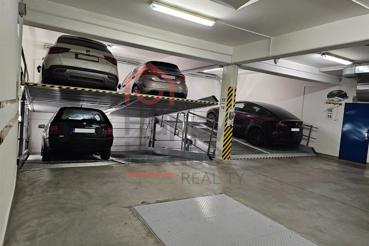 Garage parking spaces in the stacker are located in a building that was constructed in the 19th century - in 1878. The building is situated approximately 5 minutes' walk from Wenceslas Square. The entire building has been reconstructed. The property is characterized by a number of original historical features - high ceilings, wooden parquet floors, stucco decorations - combined with the most modern construction technologies and equipment - elevator, satellite reception, cable television, three telecommunications service providers. The rent depends on the size of the car and ranges between 3.700 CZK to 5.800 CZK.