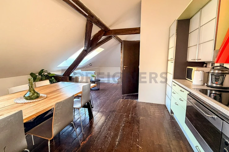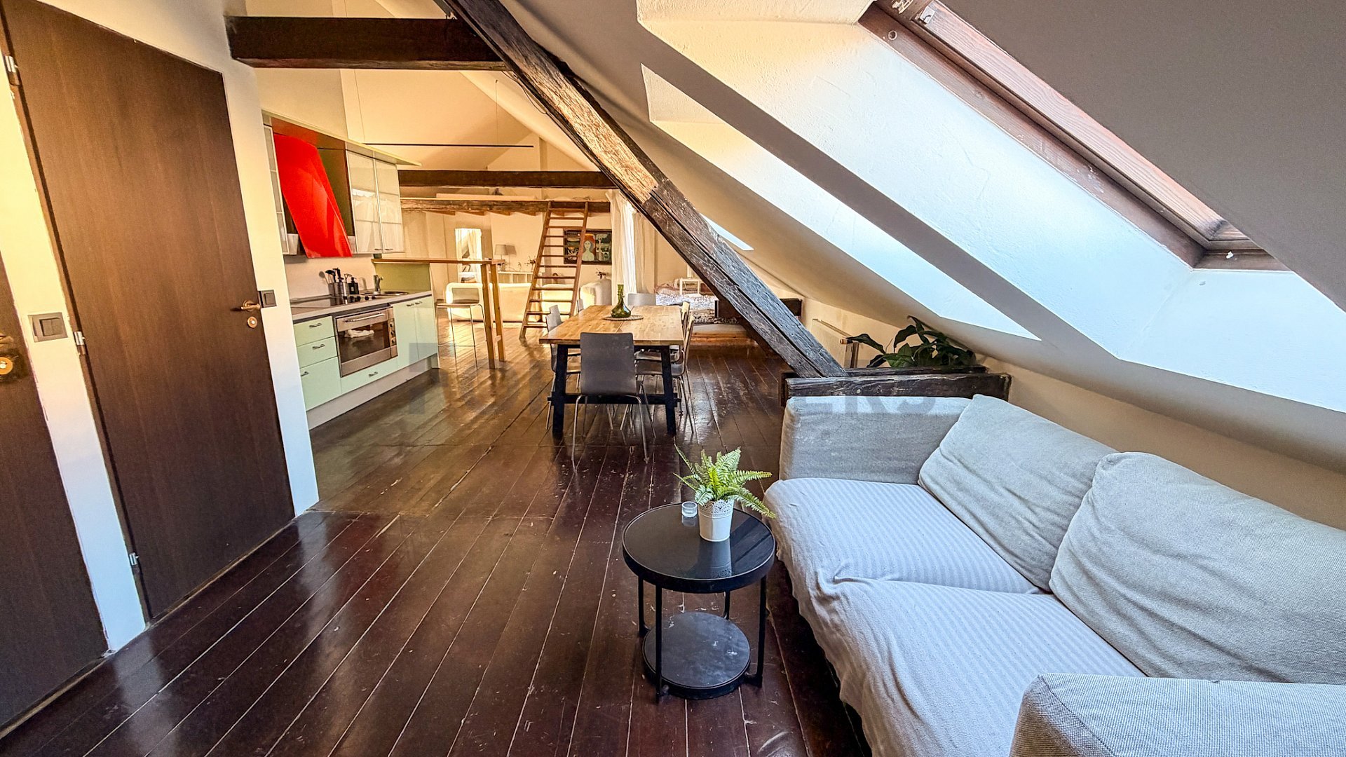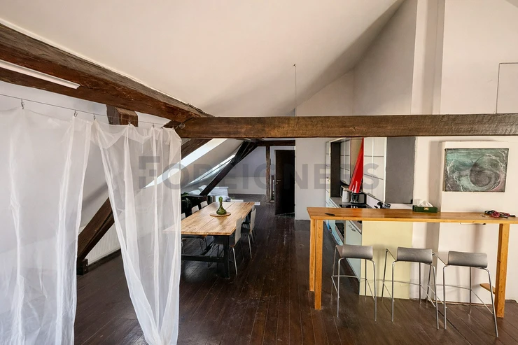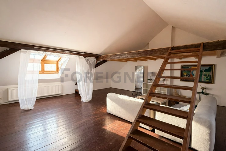 We offer for rent an exceptional attic apartment of approximately 100 m², which will impress with its airiness, light and open concept. The space offers a wide range of uses - it is suitable as an art studio, creative office, studio or non-traditional living.