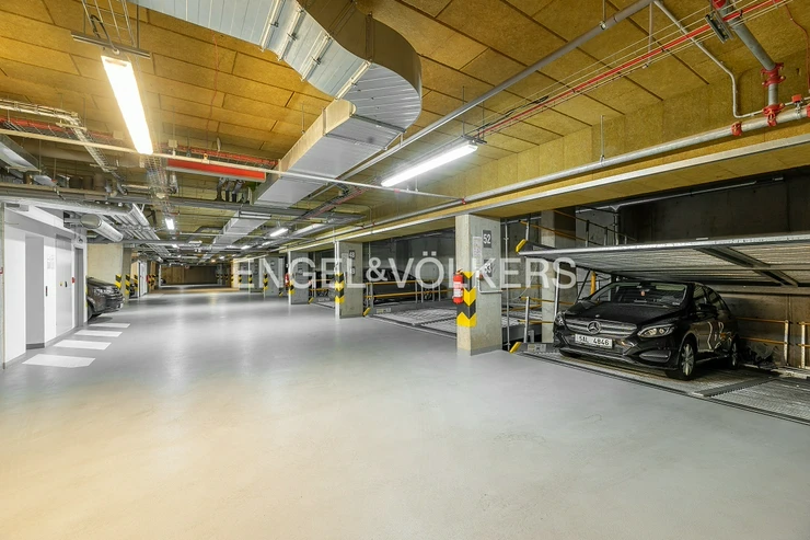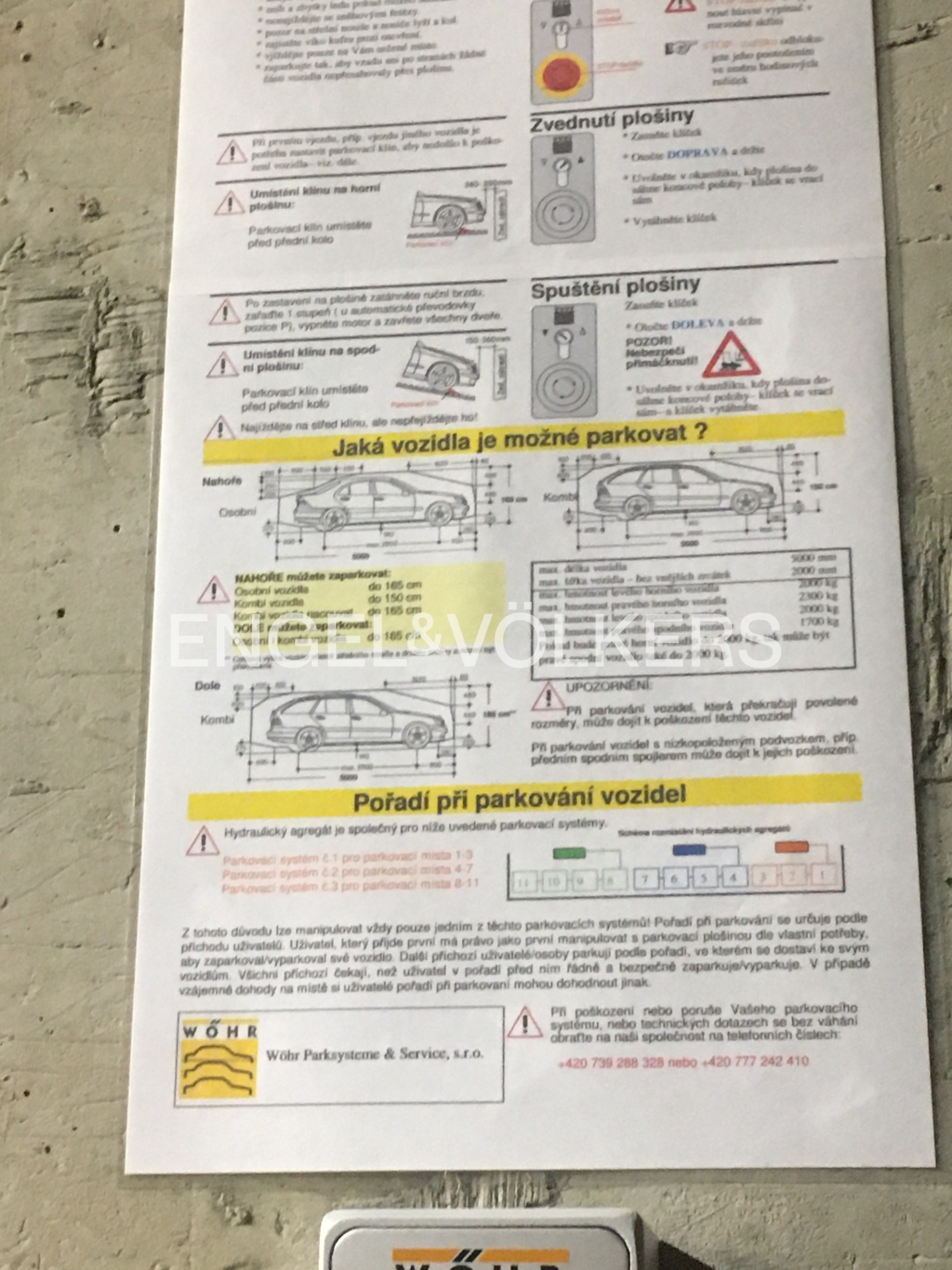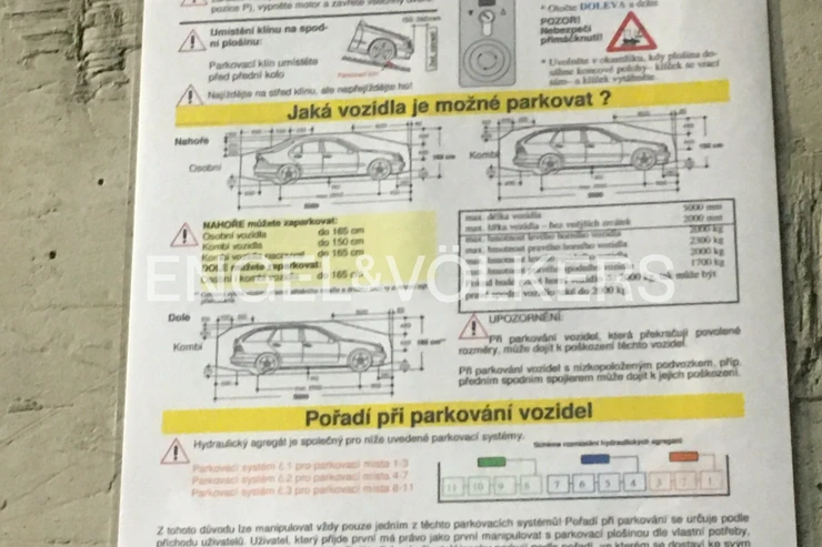 Entrance to the garage by the remote-controlled door using a chip. Access is also possible through the house, the elevator directly to the parking space. The garages are close to the Klamovka tram stop and Plzeňská street.