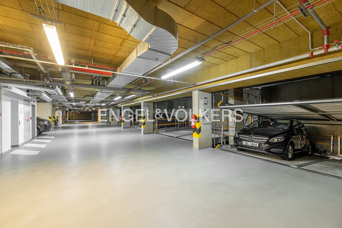 We offer for renting a parking space in the stacker (non-residential space) in underground garages in the Na Hřebenkách project area, U Okrouhlíku Street.