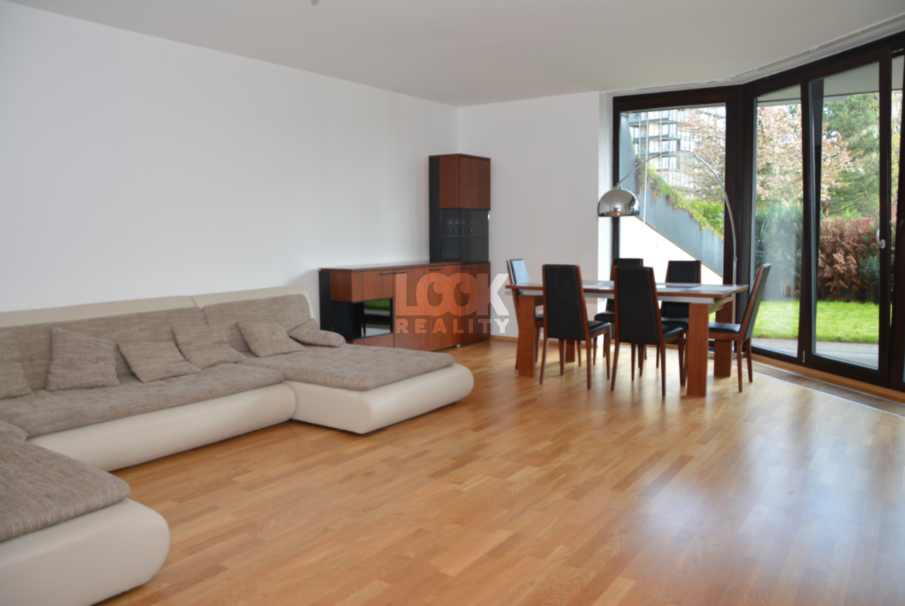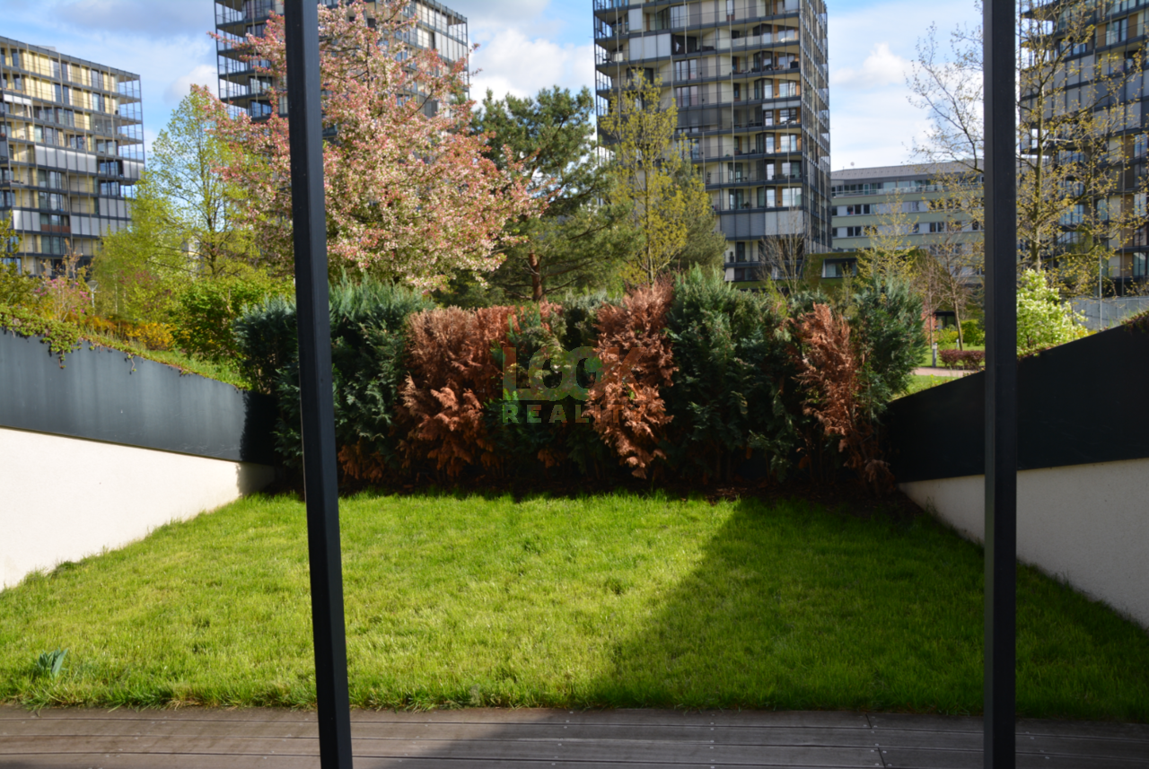 Beautiful living right in the center of Prague We offer for sale an exclusive flat 2 + kk with a total area of 136 m2 with a garden situated on the ground floor of a new building of the Central Park Prague residential complex in Žižkov. Entrance to the apartment is secured by a security door, where is a spacious entrance hall with a chamber, a bathroom with a bathtub, a separate toilet, a bedroom with access to the garden and a spacious living area with a kitchen and access to the terrace and garden. The garden has 44 m2, which is southwest oriented to the courtyard where is a private park. The whole apartment has wooden floors, underfloor heating and air conditioning. The apartment is sold with equipment, the apartment has an XL garage and a spacious cellar of 10 m2. The whole area is monitored by the camera system with 24 hour security, entrance to the premises through the reception with a 24-hour and pleasant cafe. Excellent civic access: kindergarten, restaurants, polyclinic, post office, sports center, park Parukářka. Tram stop Žižkov or Olšanská freight train station is 2 min by walk.
