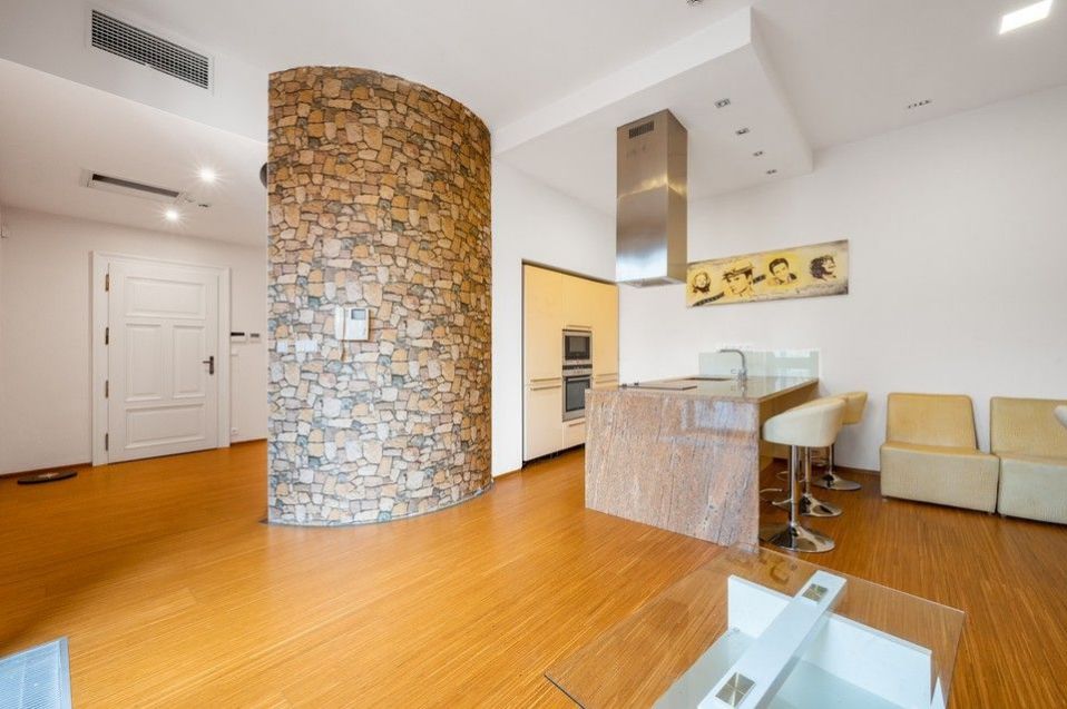 Sale of a modern duplex apartment 2kk (75m2) after reconstruction on the 4th and 5th floors of a renovated apartment building with an elevator in an extraordinary location of Prague 1, in the center in Truhlářská Street, a minute's distance from OC Palladia. Excellent civic amenities in place, transport links within minutes - metro station nám. Republiky, tram stops within walking distance.