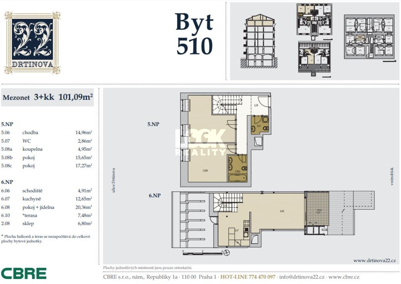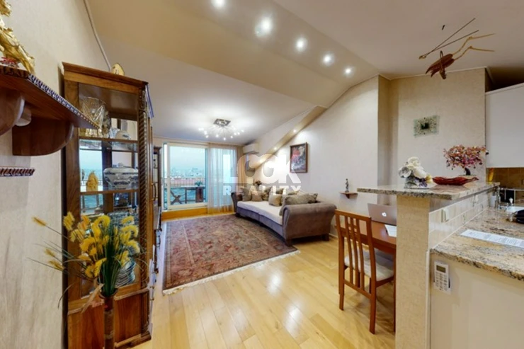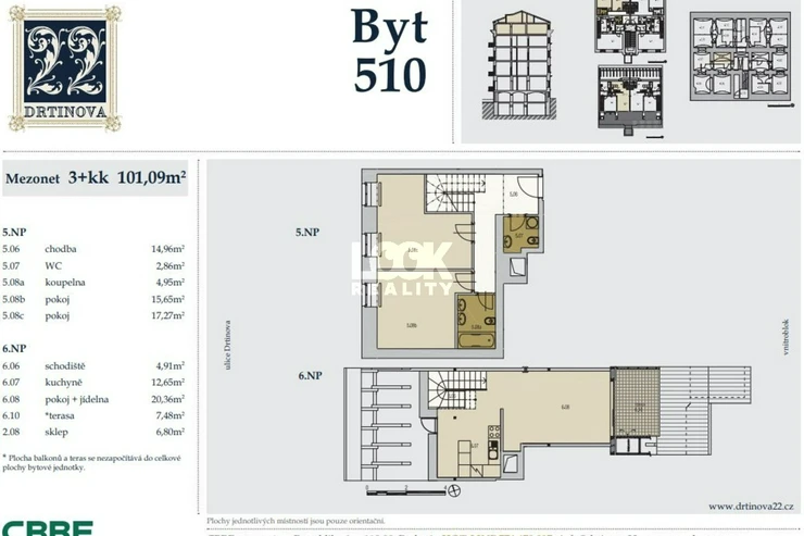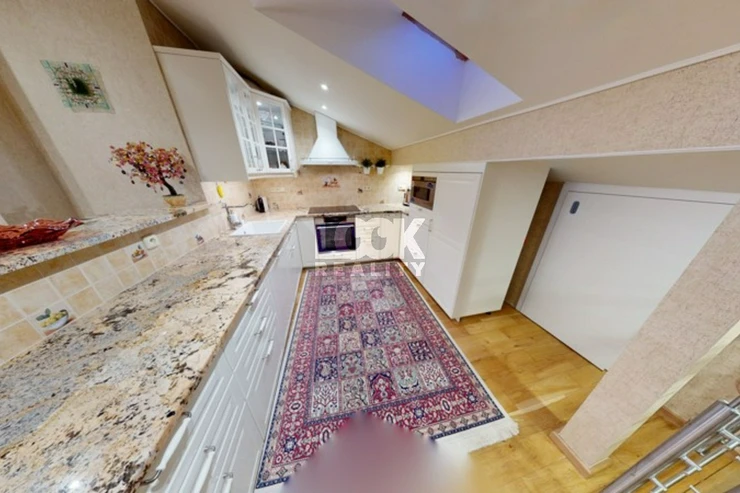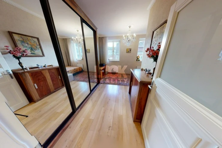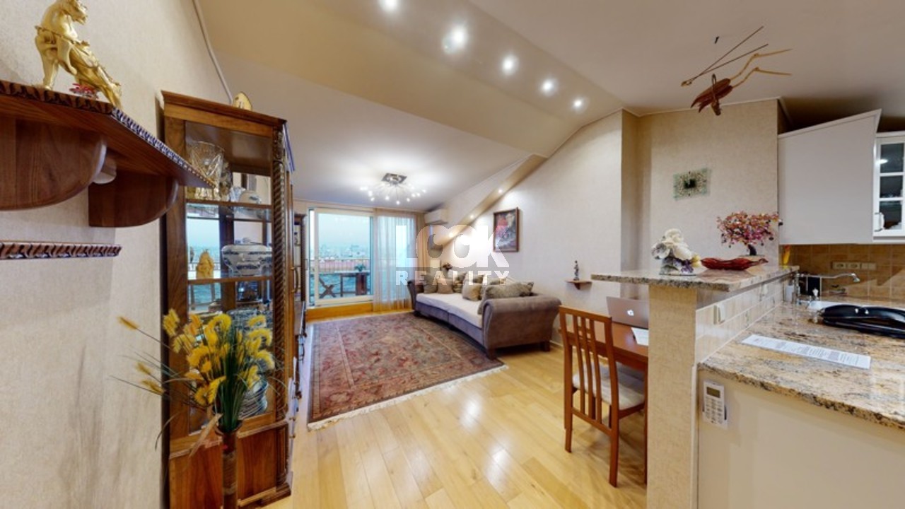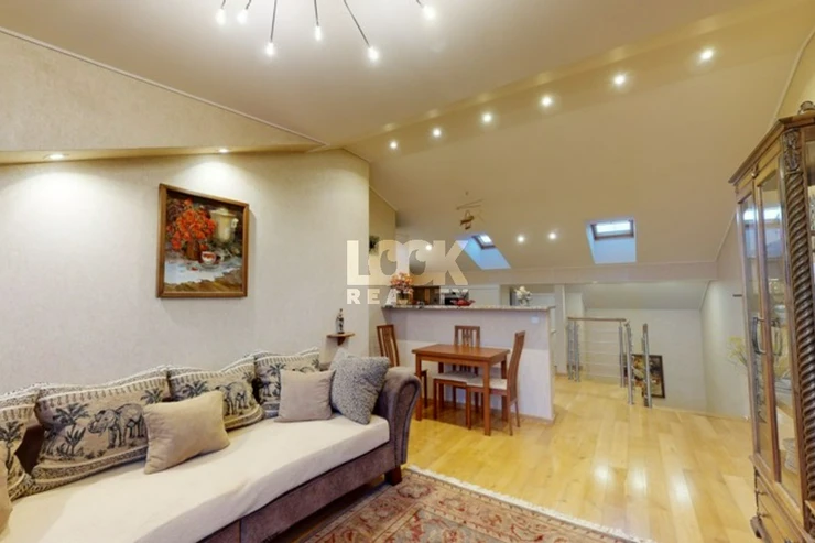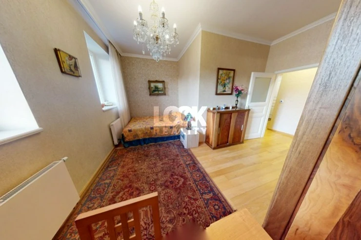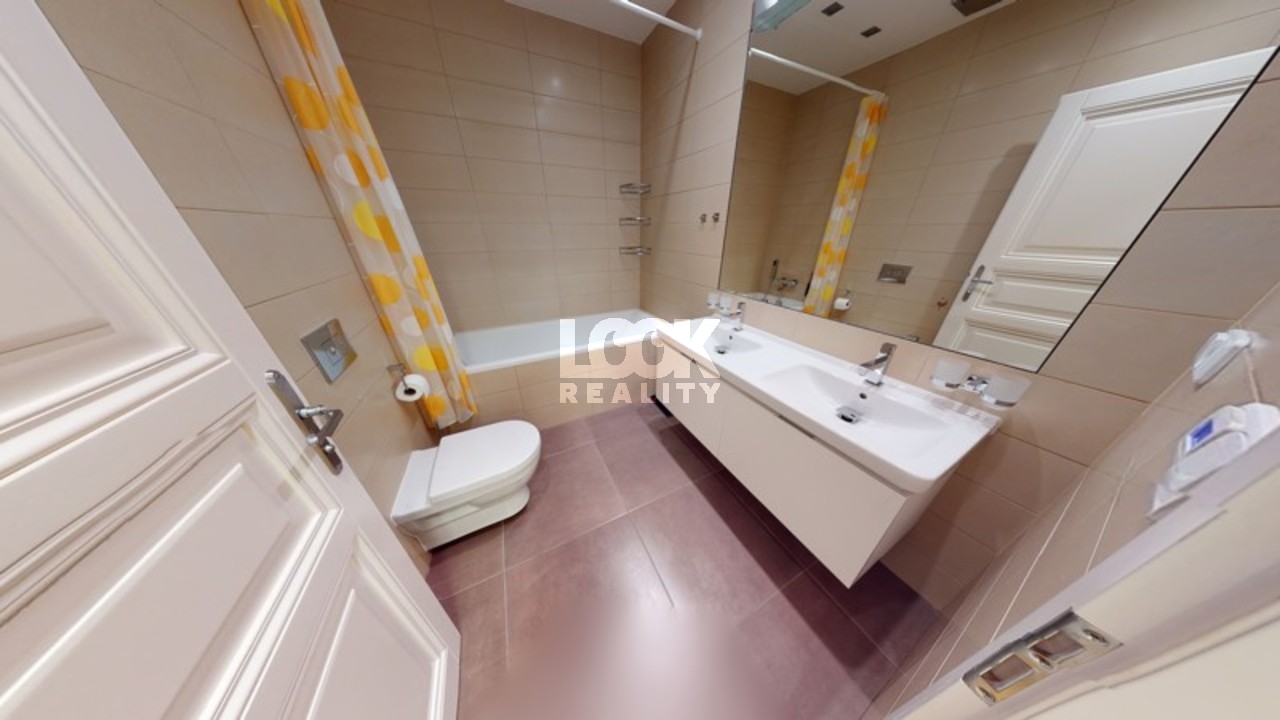 Luxury duplex apartment with a terrace overlooking Prague. We offer for sale a luxury duplex apartment 3 + kk with a total area of 119.8 m2 with a terrace (7.48 m2), located on the 5th and 6th floors of a building with an elevator in Drtinova Street. The apartment is fully furnished with luxury furniture made of natural walnut wood (including built-in wardrobes). On the first floor there is a hallway, two separate bedrooms, a bathroom and a toilet. On the second floor there is a kitchen with pantry, living room with dining area and terrace. The kitchen with African stone worktop is equipped with all appliances. In the bathroom there is a bath and toilet. Another toilet is together with a washing machine separately. The living room is oriented to the east, the bedroom to the west. Other equipment: smart home control for heating, air conditioning in the living room, natural oak parquet floors, security entrance door. There is a gas boiler room for the whole house. The apartment has a cellar in the basement. From the terrace there is a beautiful view of the whole of Prague, the Museum and other sights of Prague. A garage can be rented in the neighboring building. The house is located in an area with excellent transport links - a few minutes from the house is a tram stop Svandovo divadlo - two minutes metro B - Andel. In the vicinity of all civic amenities. Within walking distance is the shopping center Andel, Kinsky garden, Petrinske sady park, lookout tower Petrin, Vltava embankment. Luxury living and great investment, we recommend.