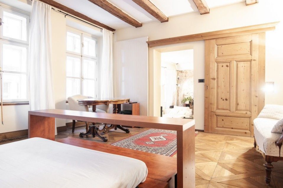We offer for sale a beautiful and luxurious apartment 2 + 1 in Prague 1 - Old Town in Karlova street in the house U Zlaté Hrušky. The reconstruction of the apartment was carried out in 2003 and the Prague City Hall awarded it with the prize for the best reconstruction in the historical centre. The building dates from the 13th century and there are Gothic ceilings. Inner equipment is characterized by harmony between historical and modern spirit. The apartment consists of two rooms, dressing room, kitchen and toilet. There are stone walls with niches from the fourteenth-century, armored door, alarm and home phone with video camera, lighting Flos and Philippe Stark. Hi-Fi system with automatic regulation in bedroom, bathroom and kitchen. Charles Street connects the Křižovnické Square next to the Charles Bridge with Little Square in the Old Town. There are all public amenities and excellent transport accessibility. All within walking distance to the centre of the metropolis.