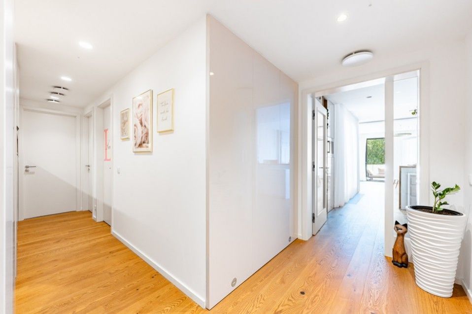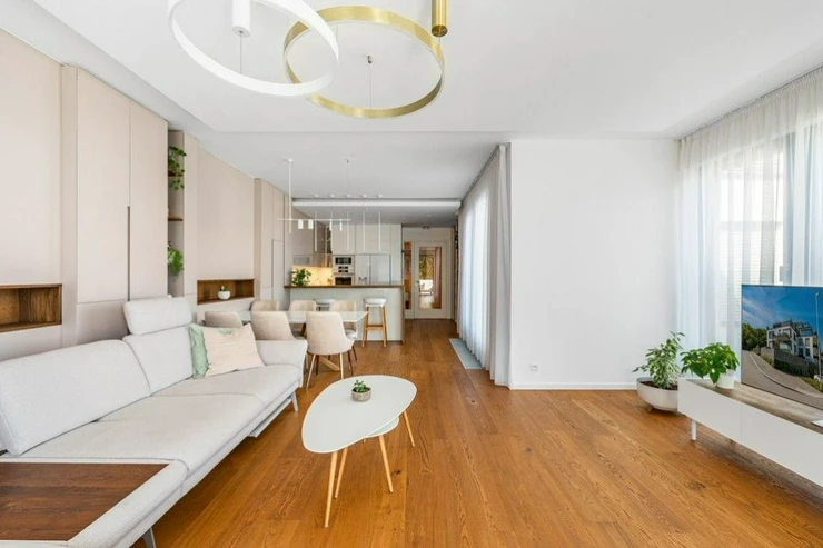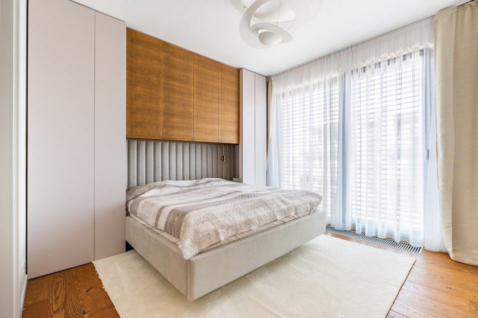 Modern technology and the high standards of the apartment underline its top quality - decentralized ventilation with heat and humidity recovery and after-cooling function, intelligent home control system, massive wooden floors with integrated fan-coil heating, large-format wooden windows with insulating triple glazing, outdoor electrically controlled aluminum blinds, floor heating in the bathrooms, branded bathroom sanitary ware and tiles, fire detectors, light motion sensor. Fiber optic internet available with wiring in all rooms.