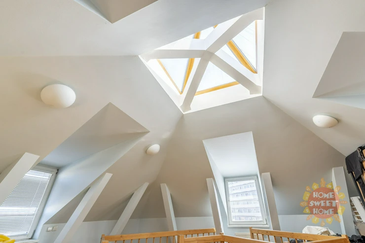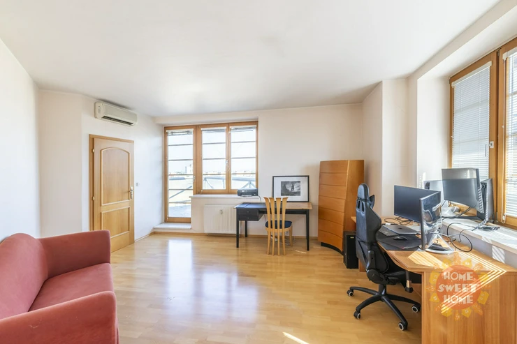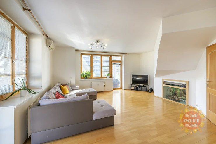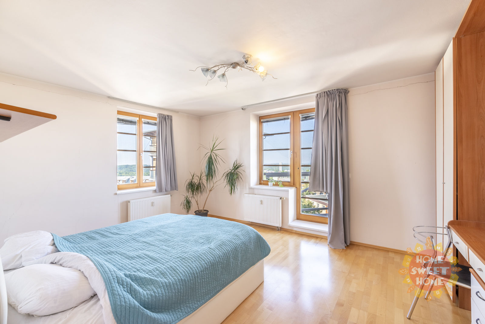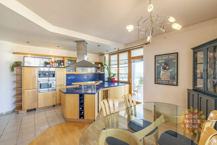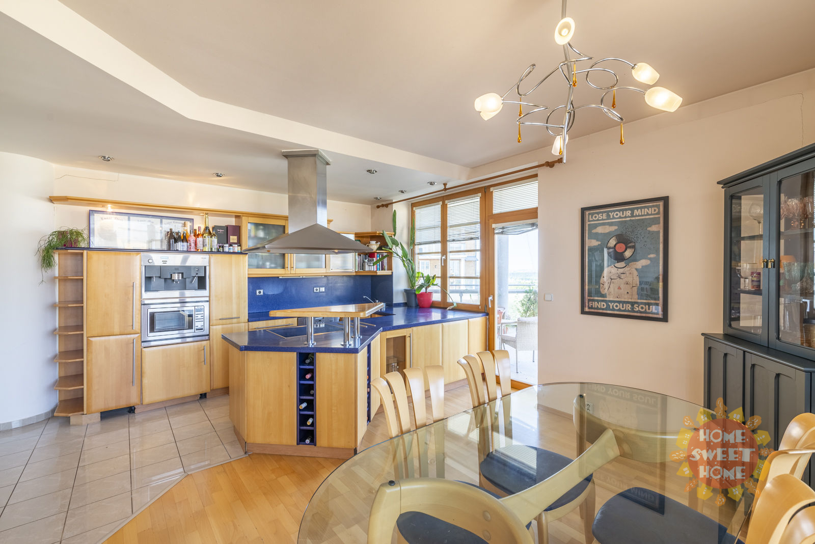 We offer for sale a unique bright apartment of 4+1, located in a quiet part of Prague near the city center - Prague 6 - Veleslavín, Křenova street. The interestingly designed apartment is located on the 7th, 8th and 9th floor of an apartment building with an elevator in the residential complex Hvězda. The floor area of the apartment is 288 sq m + 6 terraces (21,56 m2, 66,16 m2, 15,19 m2, 15,19 m2, 17,10 m2). The apartment also has two parking spaces.