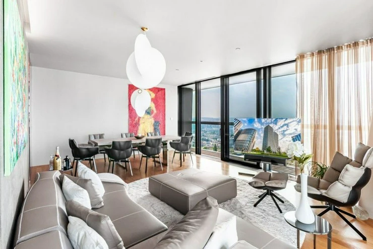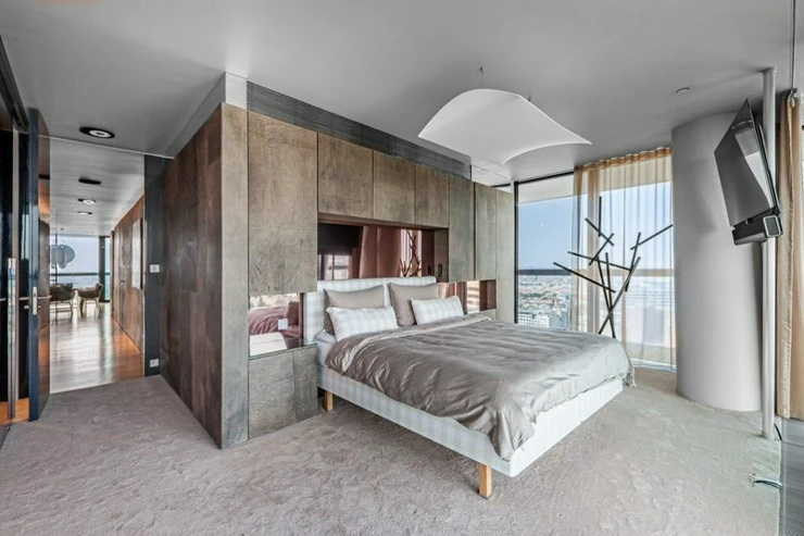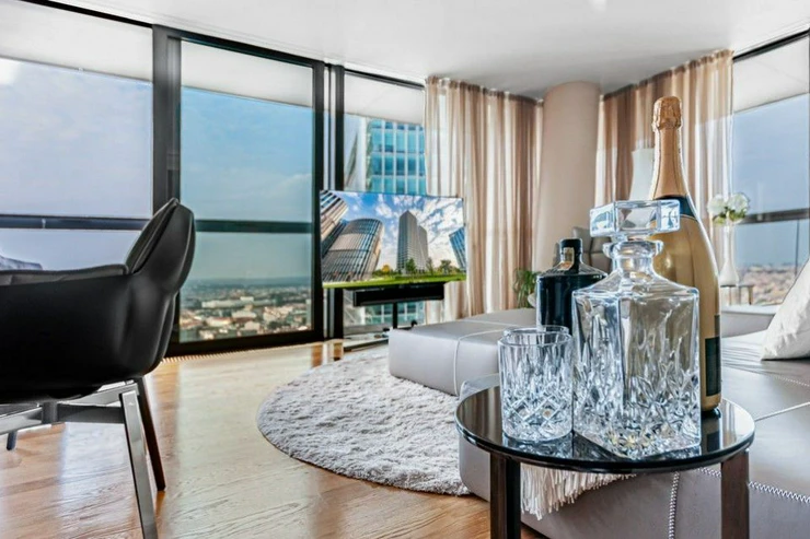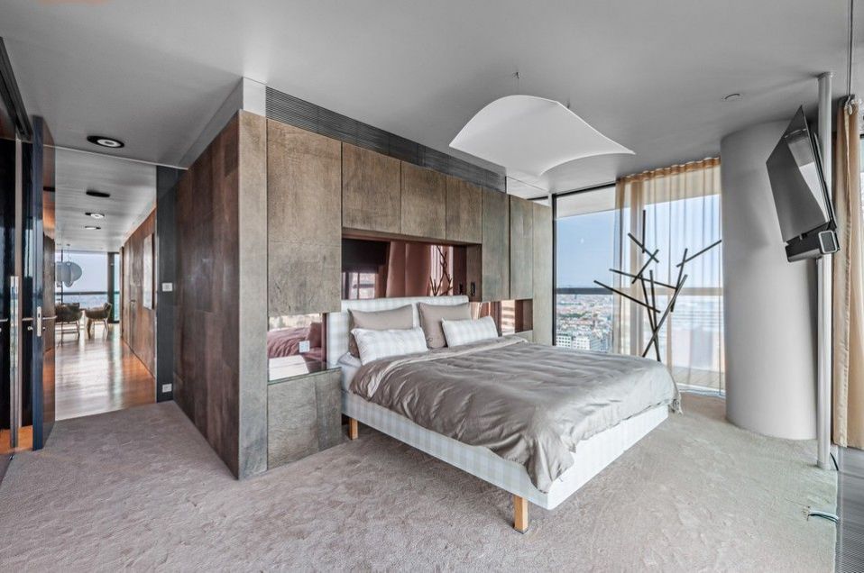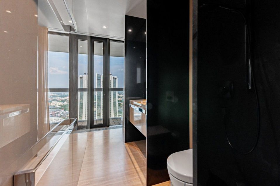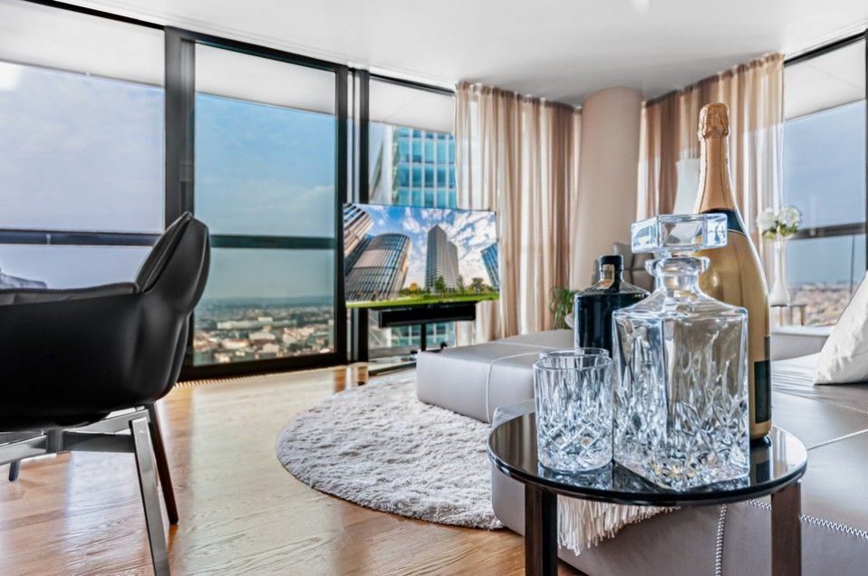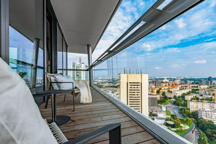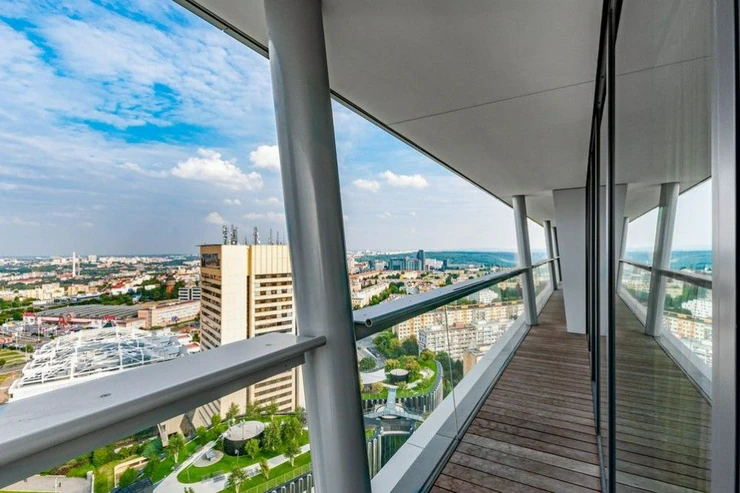 Sale of a representative, luxurious, southwest-oriented apartment 4 + kk (197 m2) with a terrace and unrepeatable views of Prague Castle, lining the entire apartment with unrepeatable views of the Prague skyline with two parking spaces and two cellars on the 24th floor of the west tower of the V Tower project, in a thirty-storey 104-meter-high skyscraper on the Pankrác Plain in Prague 4, northeast of the intersection of Pujmanová and Milevská streets, on the border of Krč and Nusle. The V Tower building in Prague is a building with state-of-the-art, timeless technologies and luxury materials, as well as exemplary design with above-standard services for the most demanding residents.
