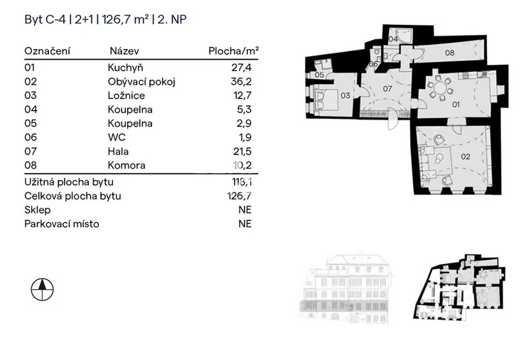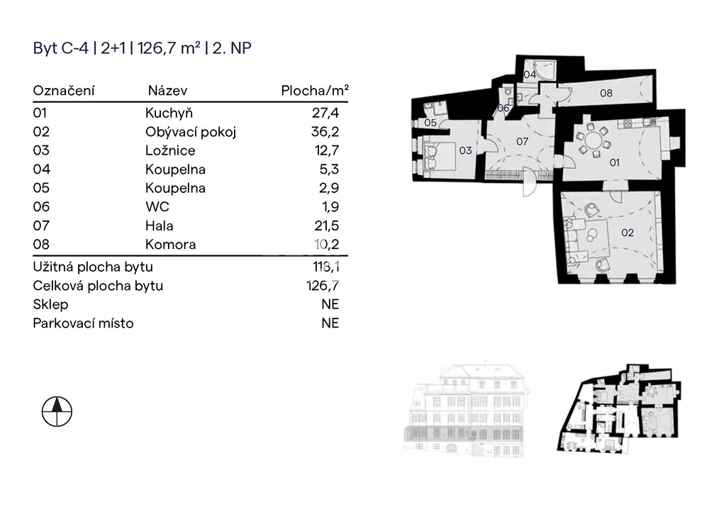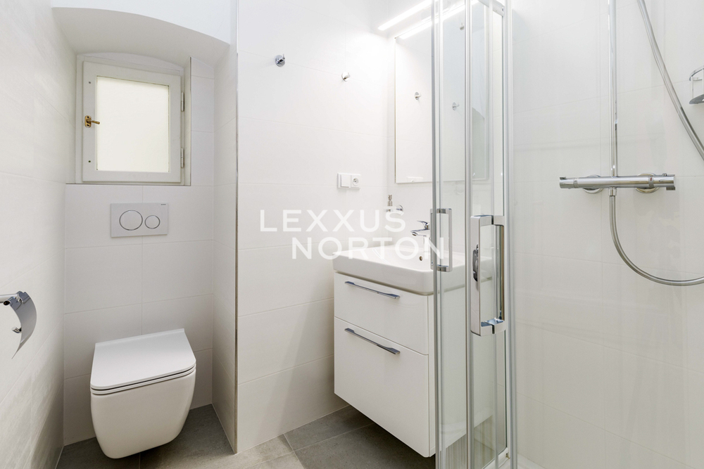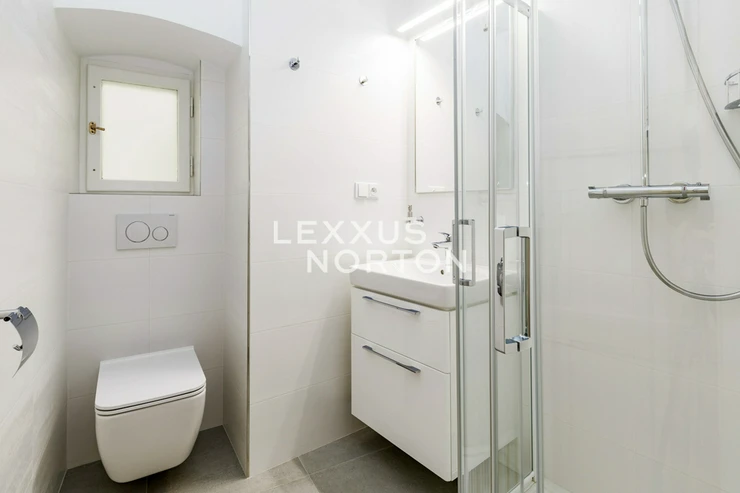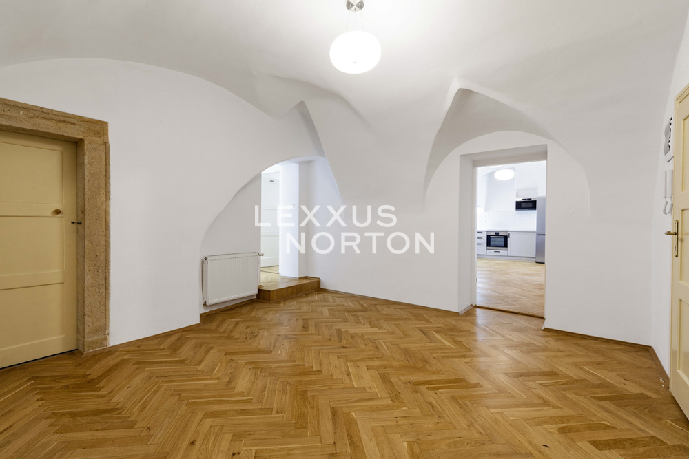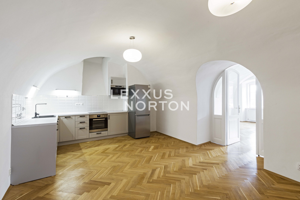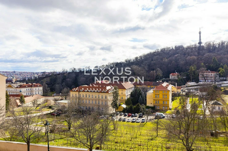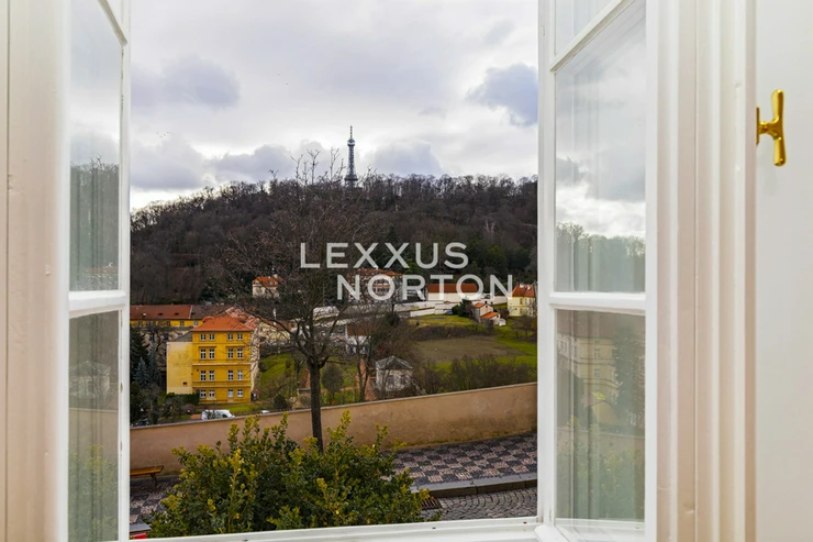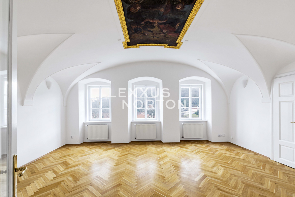 Above-standard housing with a unique atmosphere located in a prestigious location of Mala Strana. A very spacious one-bedroom apartment for sale with a view of Petrin with a total area of 126.7 sqm is perfect for a single person or a couple looking for unusual living and inspiring spaces. Rezidence Úvoz is located in a picturesque suburb and is surrounded by history, greenery and culture.The completely renovated apartment is located on the first floor and is designed with an emphasis on practicality and spectacular spaces. From the representative entrance hall (21,5 sqm) one can move to the bedroom (12,7 sqm) with en-suite bathroom with shower and toilet or also to the fully equipped kitchen with dining area (27,4 sqm). From the kitchen there is a direct access to the living room (32 sqm). The apartment also offers a spacious pantry (10,2 sqm), a second bathroom with bathtub and a separate toilet. The kitchen is fully equipped with modern Whirlpool appliances. In the bathrooms you will find furnishings from renowned brands Laufen, Huppe, Hansgrohe and for your comfort there is a new Vaillant gas boiler installed. The interior of the apartment is perfectly in tune with the historical spirit of the building, as evidenced by the solid wooden ceiling, ceiling painting with historical motifs and the admitted stone on the ceiling in one of the bathrooms. The mullioned windows together with the numerous arches give the apartment a unique atmosphere. The emphasis on quality and design is evident in every detail, which is enhanced by the large-format tiles or restored oak parquet floors.The location offers excellent transport links, including walking access to tram and bus stops. The A line metro stations - Hradcanska and Malostranska - are also nearby. The surrounding area offers a full range of amenities - from first-class restaurants, bars and bistros to cafes, galleries and museums. For nature and history lovers, there are several parks and historical monuments nearby, including Prague Castle, Hradcany, Petrin, Lobkovicka zahrada, Svatojanska vinice, Velka Strahovska zahrada and more.