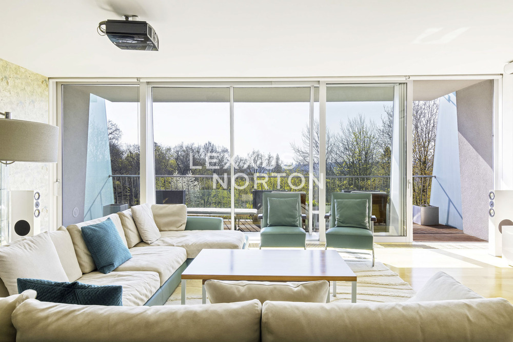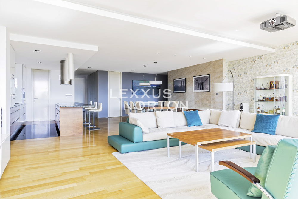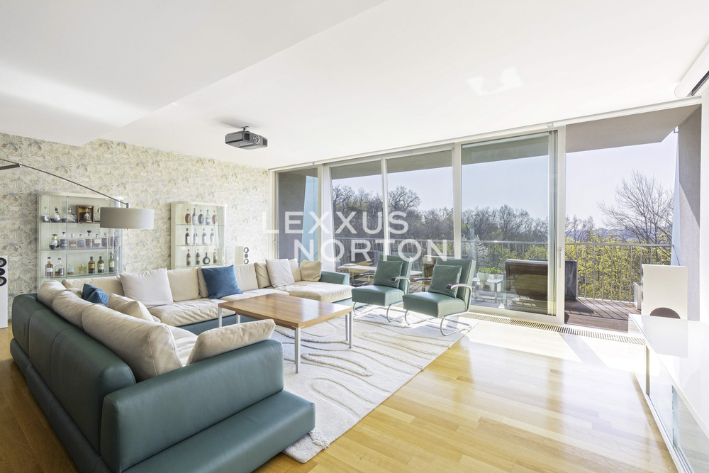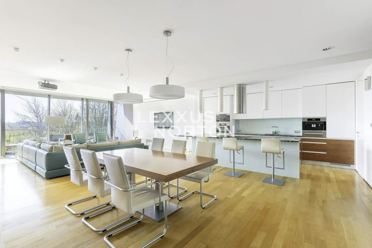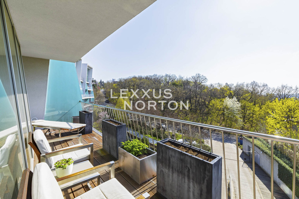 Bright apartment 3+kk with spacious terrace for sale. The apartment offers a generous living area with kitchen and access to the terrace, from which there are panoramic views of the surrounding greenery and the city. The apartment also features two spacious bedrooms, a bathroom with bath and toilet, a separate toilet and a storage room. The kitchen is fully equipped with Miele appliances. The apartment has wooden floors and fully furnished bathrooms to a high standard. Plenty of built-in wardrobes and storage space. The house has a central gas boiler room. The apartment has 2 parking spaces and a cellar.Fees include all the services of Residence XY such as swimming pool, sauna, gym, squash and children's playroom. The whole area is protected by a camera system connected to 24 hour security at the reception of the house.The residence is located on the south side of Strahov hill in the popular residential area of Prague 5 - Hrebenky. The street Na Hřebenkách undoubtedly meets the address of the wider centre with a short commute to the city centre. The bus stop is less than 5 min. walk from the house and the tram stop less than 10 min. Within walking distance is Ladronka Park and about 10 min. by car shopping center Novy Smichov In the vicinity of the residence you will find plenty of unique and attractive places for sports and leisure activities, including Ladronka and Petrinske sady. A short walk will take you to Pohorelec or to the historical area of Prague Castle. The neighbourhood of Prague 6, where several prestigious international schools are located, is also convenient, as well as easy access to Vaclav Havel Airport, Pilsen or Karlovy Vary.