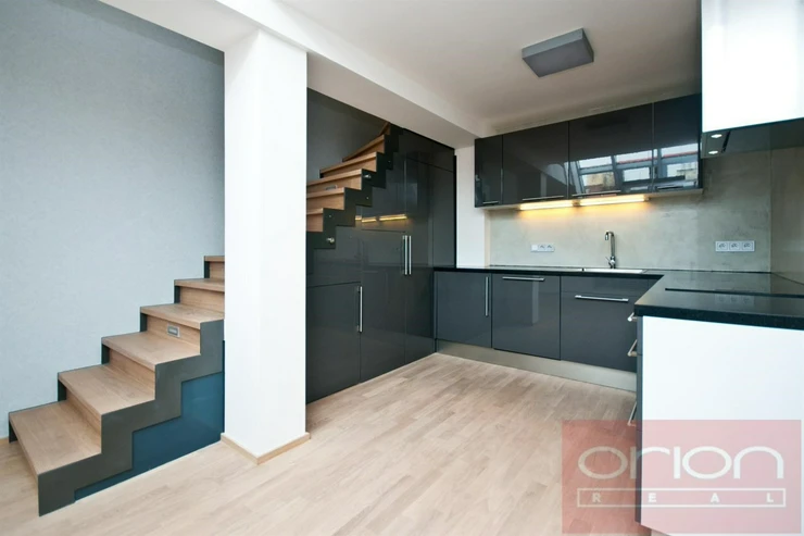 We offer for sale a maisonette apartment with a terrace facing the courtyard in the historical part of Prague 5 - Smíchov. The building is located in the wider center of Prague, very close to the Anděl public transport stop. The apartment of 109 sqm consists of a spacious living room with a fully equipped kitchen and dining room, 2 bedrooms, a bathroom with a shower, bathtub and toilet, another separate toilet, an entrance hall, a utility room and a 37 sqm terrace. The high standard of equipment includes wooden floors and air conditioning.