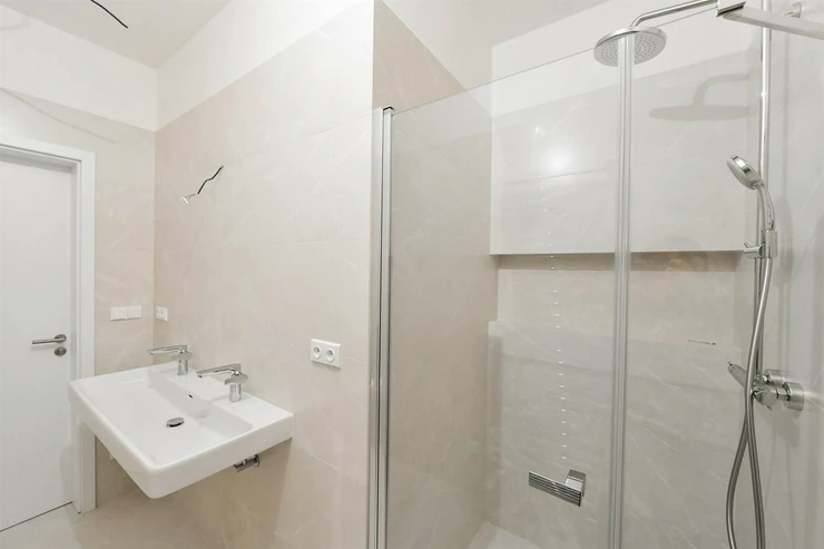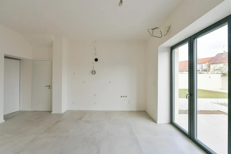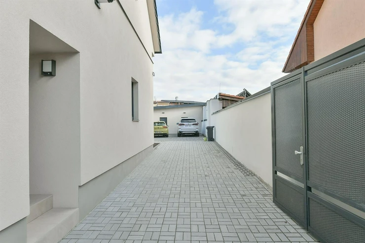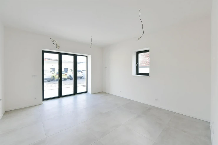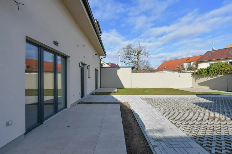 Byt se skládá z obývacího pokoje s kuchyňským koutem, který je orientován na jih, francouzskými okny kterými vstoupíte na klidnou předzahrádku, 1 ložnice + 1 pokoj, dále koupelny se sprchovým koutem a samostatným WC a technickou místností. V klidné zahrádce je také jedno parkovací stání pro automobil a skladové prostory patřící k bytu.