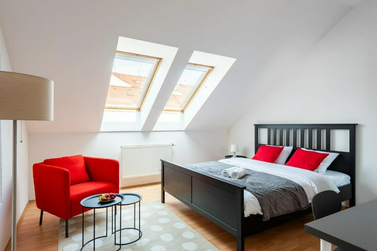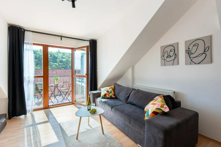 Smichov is one of the most desirable locations in Prague, not only due to its excellent amenities, but also due to its proximity to the Nový Smichov shopping centre and cultural monuments. The Bertramka tram stop is just a 1-minute walk from the house and within one stop you can reach Anděl - one of the most important transport hubs and shopping centres in Prague.
