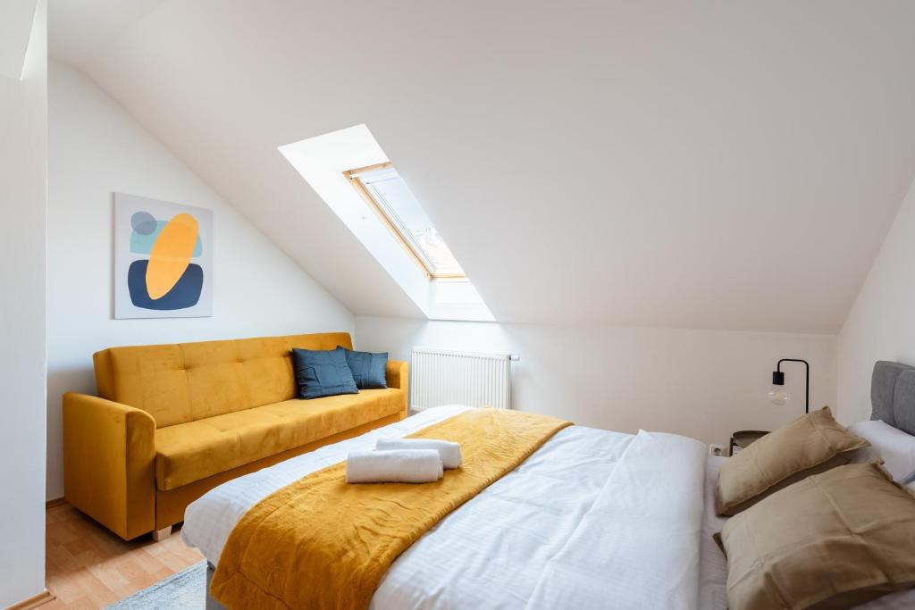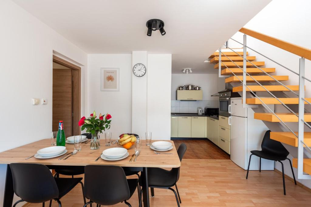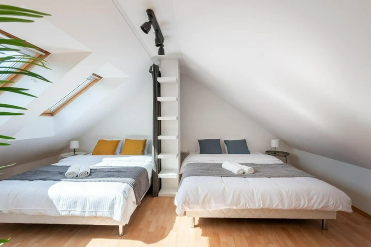 The apartment is divided into two floors, providing plenty of space and privacy: