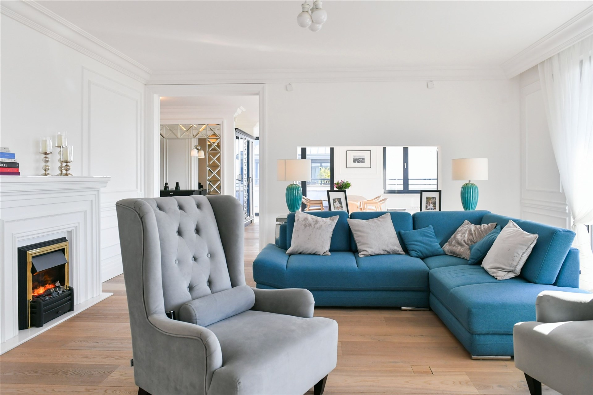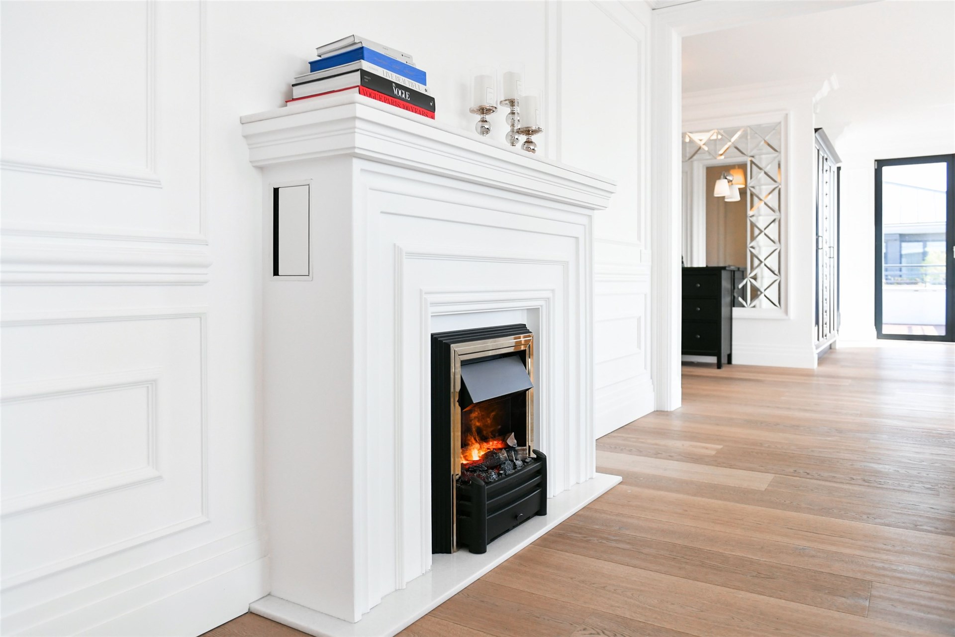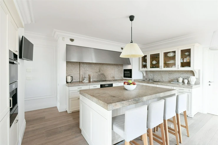 The interior of the apartment itself is very tastefully designed. Worth mentioning are the luxury kitchen by SieMatic with Miele appliances (DE), interior doors by Ferrero Lagno/Kevia (IT), Trapa wooden floors (AT), and so forth.