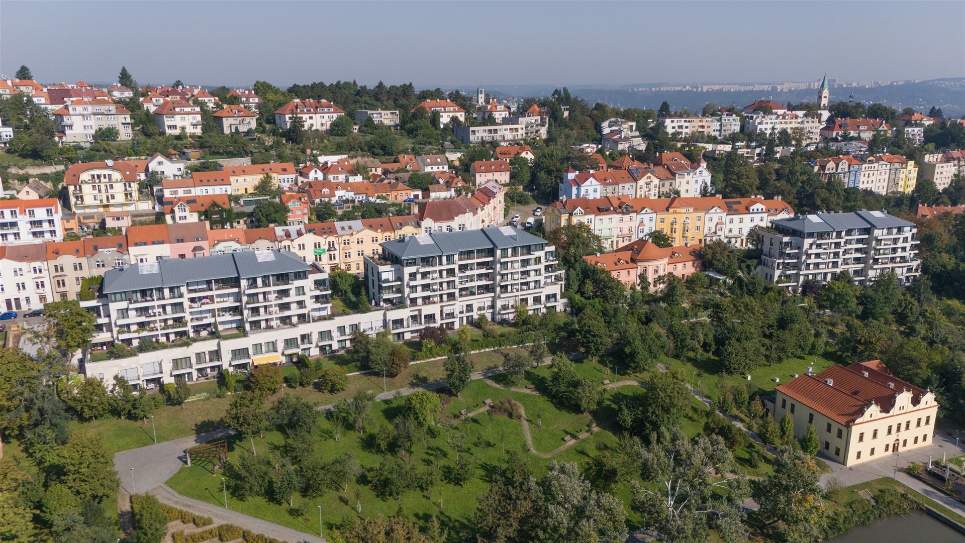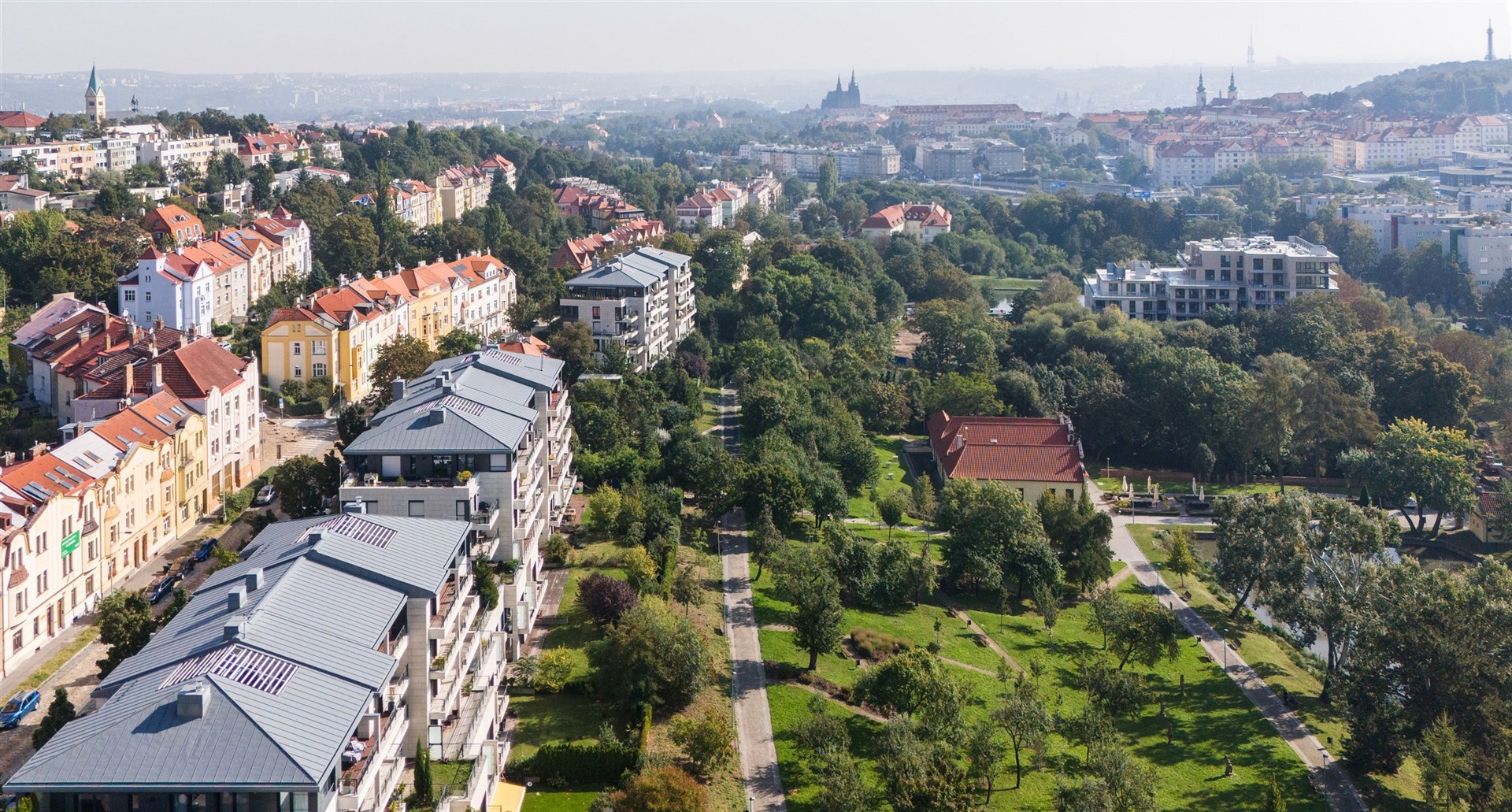 The location itself offers not only complete civic amenities, parks, and an environment conducive to relaxation, but also very quick connections to any part of Prague, including the airport.