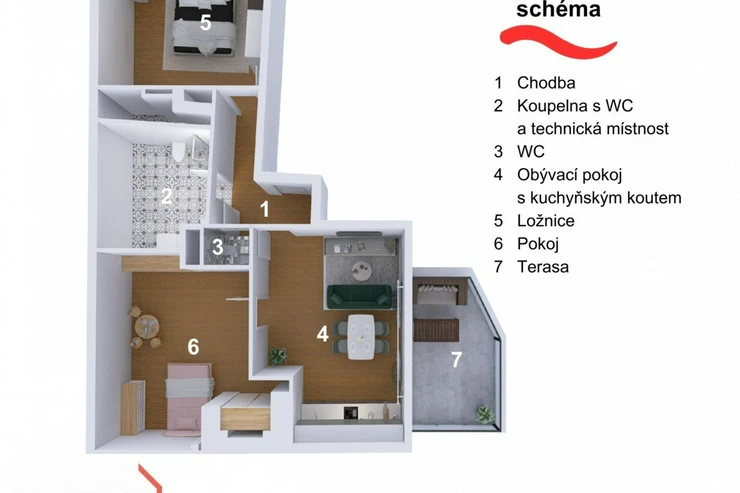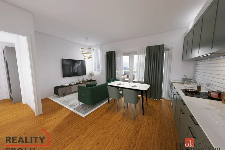 Nabízená jednotka je dispozičně 3+KK, je vhodná tedy i jako investiční na pronajímání. Nachází se v 7. NP.