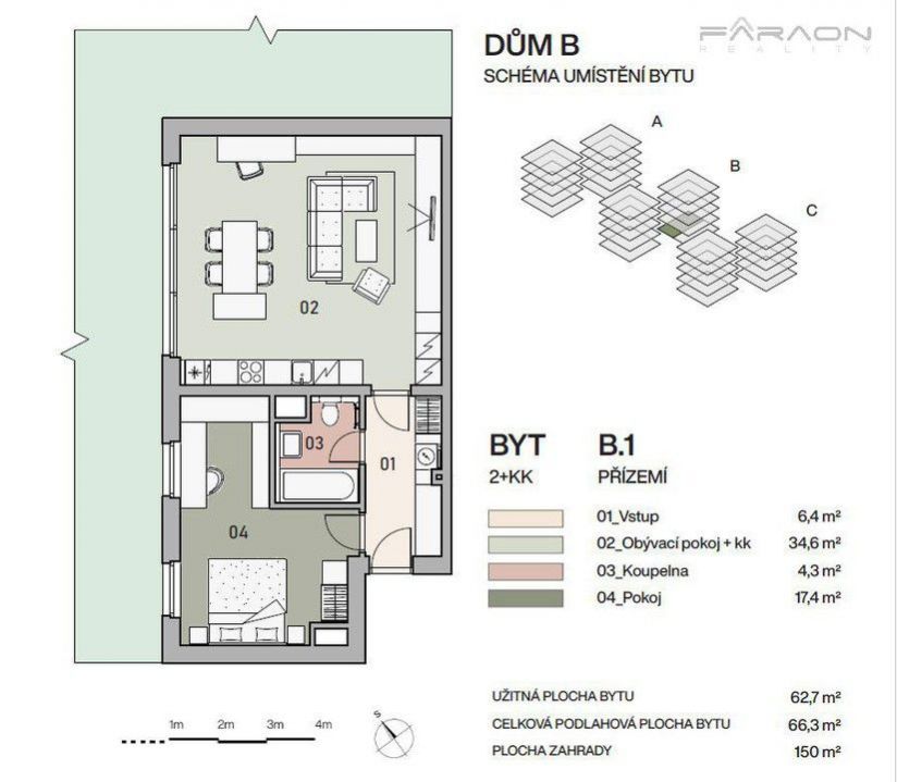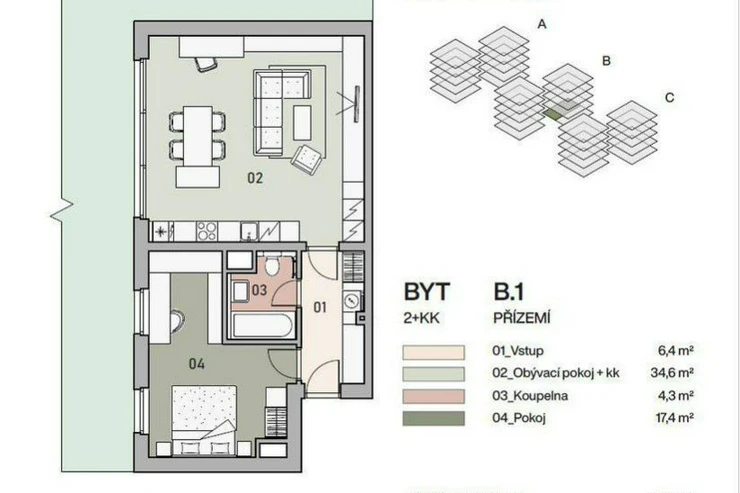 We offer you a high-standard new 2+KK apartment with an area of 68.1 m2 with a garden of 150 m2 in a cozy project of three apartment buildings in the Klíčov Residence, in the heart of Vysočany, near the Vysočanská metro station.