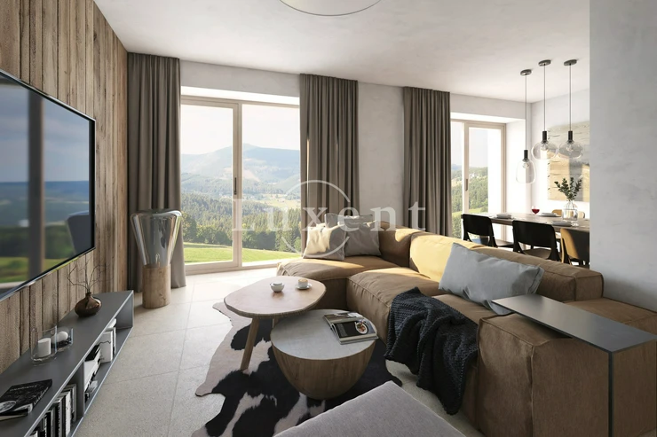 We offer a mountain apartment in a new project in Pec pod Sněžkou. It is a new building of 33 apartments with common facilities in an exceptional location at an altitude of 1000 m above sea level directly on the Zahrádky ski slope. You can get unique opportunities to spend your time in the mountains "in your own" and at the same time invest with a return. The apartments will be professionally managed with the provision of rentals and services (catering, transport, mountain program, etc.). All this is taking shape and you can be there at the very beginning and choose the best apartment for you.