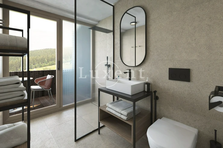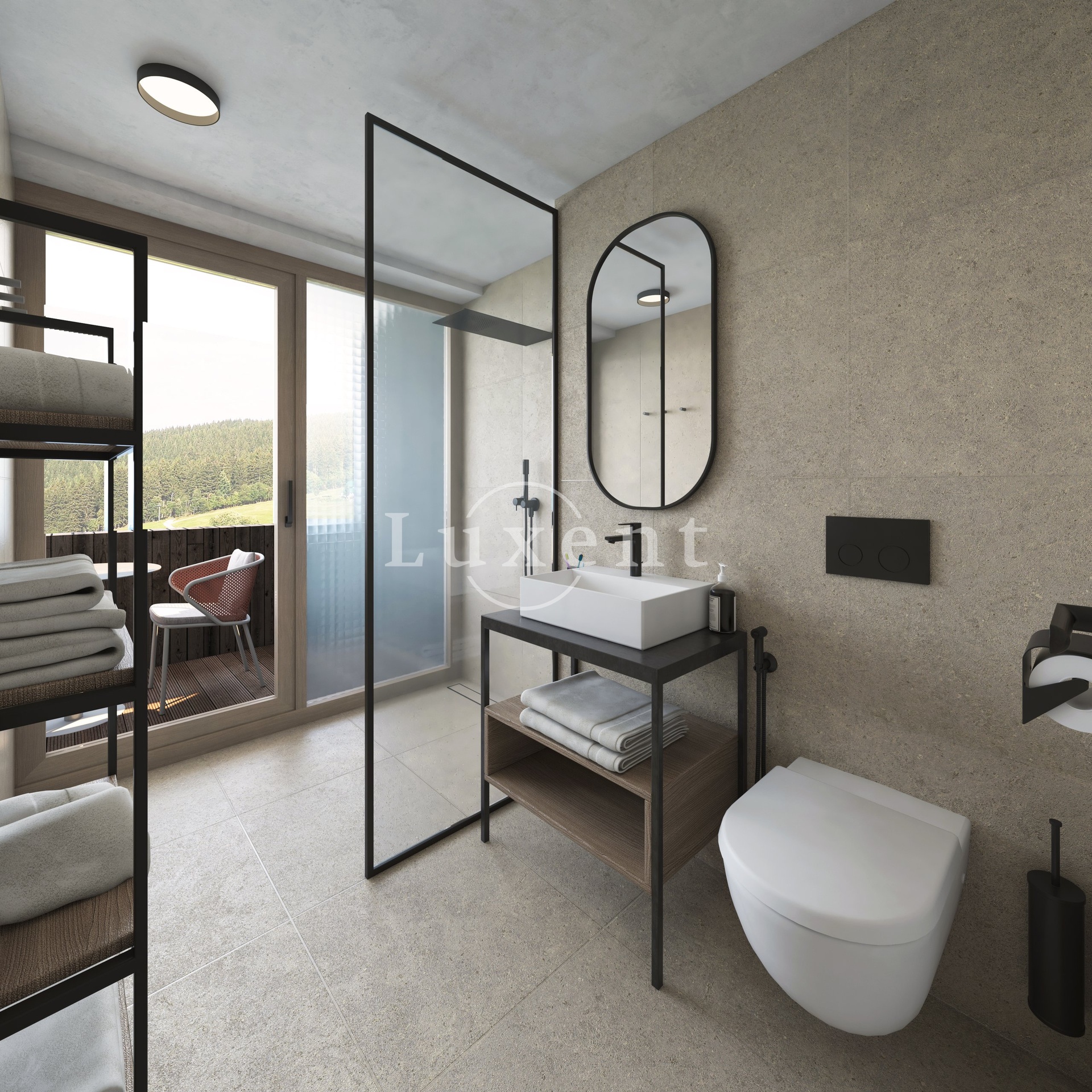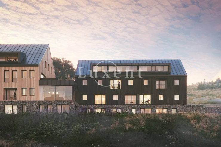 We offer a mountain apartment in a new project in Pec pod Sněžkou. It is a new building of 33 apartments with common facilities in an exceptional location at an altitude of 1000 m above sea level directly on the Zahrádky ski slope. You can get unique opportunities to spend your time in the mountains "in your own" and at the same time invest with a return. The apartments will be professionally managed with the provision of rentals and services (catering, transport, mountain program, etc.). All this is taking shape and you can be there at the very beginning and choose the best apartment for you.