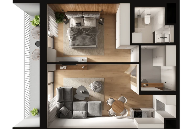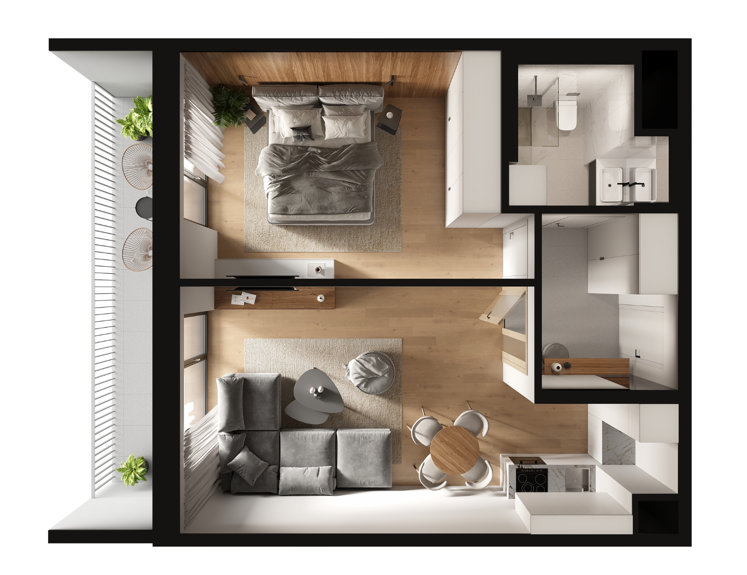 Introducing L1FE House. A new residential development by Daramis, offering its residents access to in-house amenities such as co-working, the gym, common laundry area and much more. Live 3mins away from Strižkov metro (red line). Our 2kk apartments offer ceiling heating and cooling, triple glazed windows, balconies/terraces, recuperation systems for clean air and preparation for blinds. Perfect for an urban lifestyle.