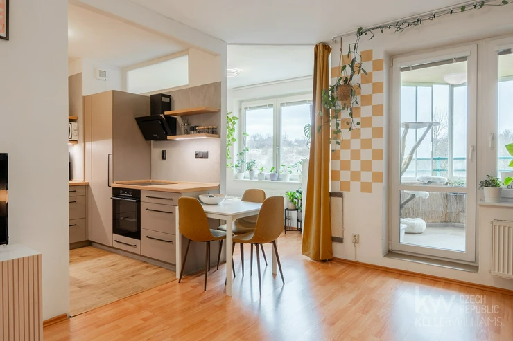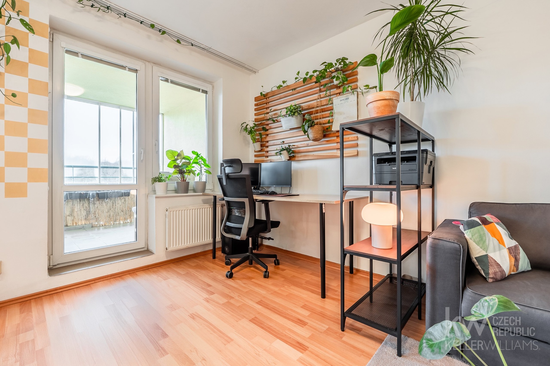 Byt je orientován na jihozápad, zajišťuje tedy dostatek světla po celý den a nabízí výhledy na zeleň.