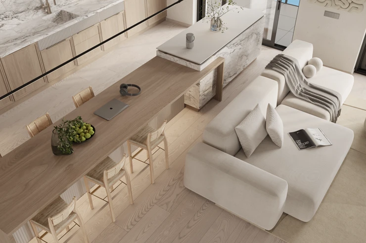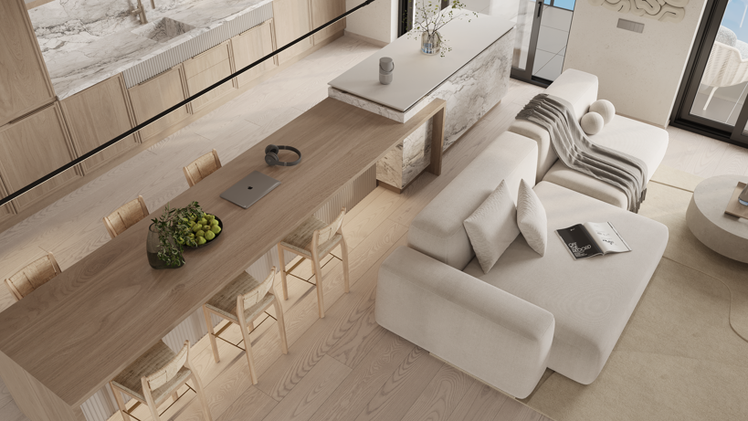 This penthouse, which stands out for its timeless architecture, premium materials and exceptional panoramic views, also boasts two spacious terraces, a glazed loggia and a winter garden, which extend the living space and ensure maximum comfort. There is also a preparation for the installation of a jacuzzi for an even higher level of comfort. The MAJESTY penthouse is offered in shell & core plus design, giving the opportunity to customize every detail according to personal preference - from materials to overall design. This flexibility allows you to create a home exactly to your liking.
