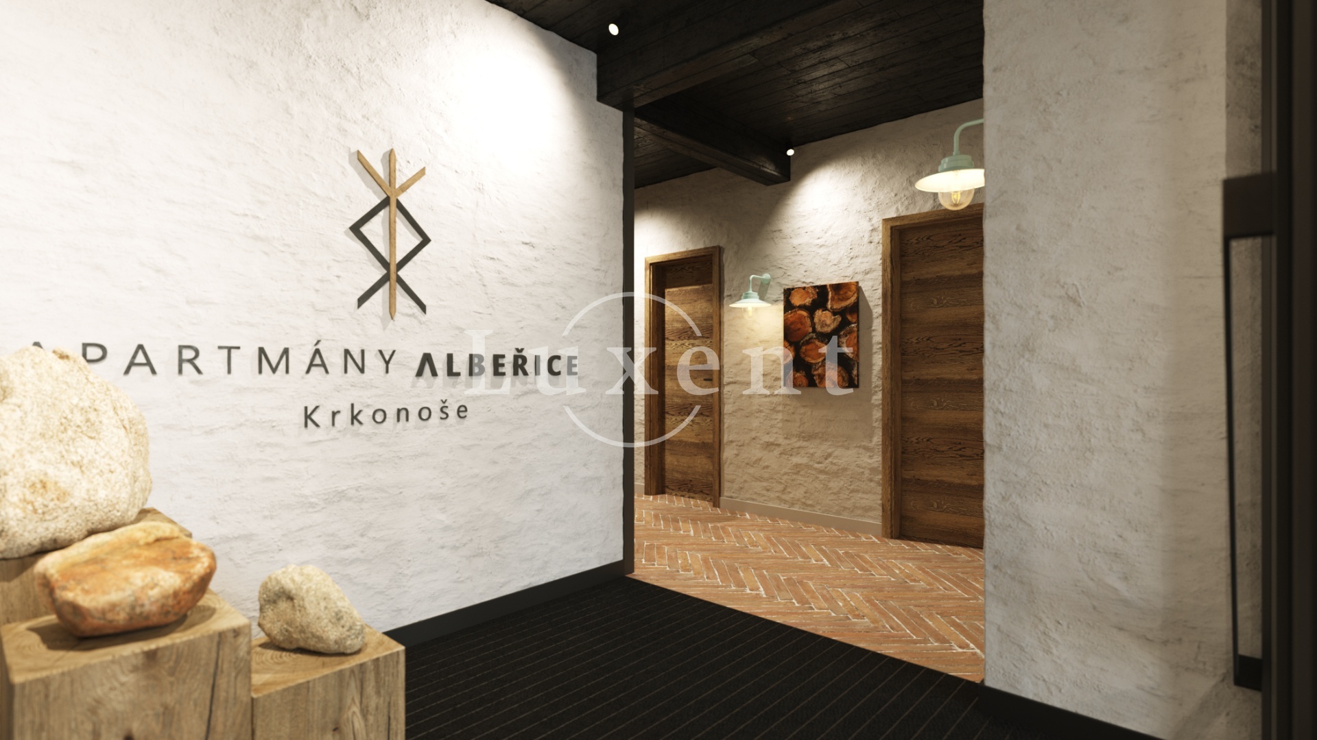This unique project – the luxurious Albeřice Mountain Apartments – offers originality and high quality in an intimate, luxurious mountain "cottage" with only eleven apartments, with a maximum of three apartments per floor, except for the ground floor. It is located in the picturesque village of Dolní Albeřice, which is easily accessible all year round and is one of the few villages that has retained its original Krkonoše character. The project achieves exceptional energy efficiency class A.