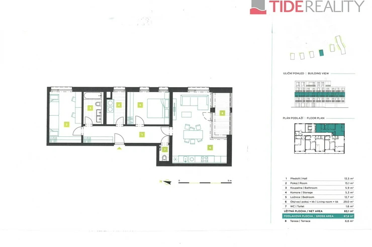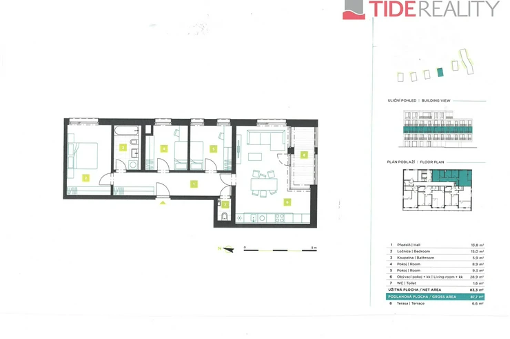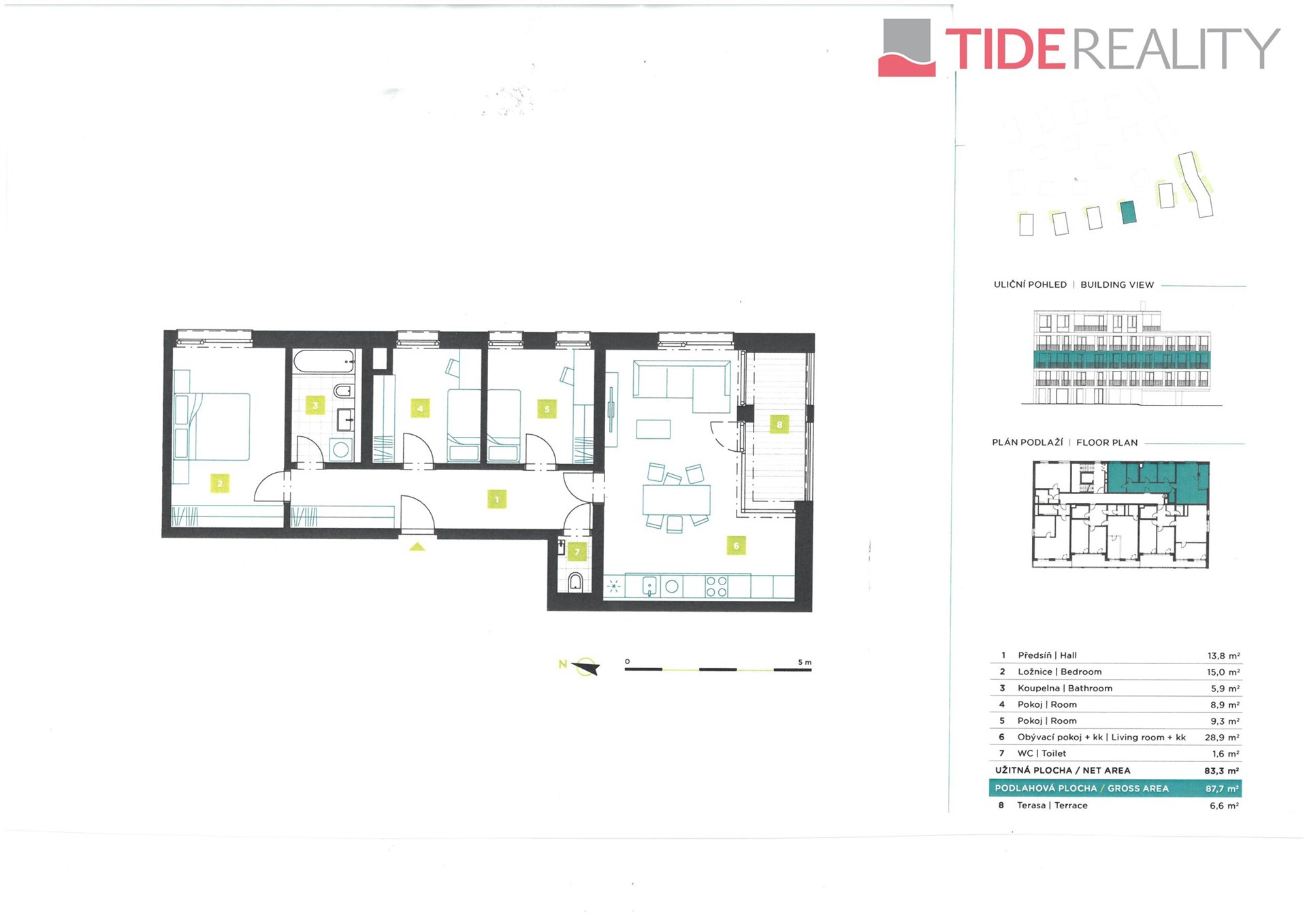 This specific apartment 4+kk with a floor area of 88 m2 and a terrace of 6.6 m2, is located on the 3rd floor of the five-story building A4 and has a very pleasant southeast orientation. Each 3,4,5+kk apartment unit also has a choice of at least 2 outdoor/indoor parking spots, which are not included in the price of the apartment, and it is also possible to purchase a cellar for larger apartments. The entire project offers a large selection of 3,4,5+kk apartments ranging from 88 to 120 m2 even on higher floors and with spacious terraces. At the moment, it is also possible to customize units to some of your specific requirements, so do not hesitate to contact us.