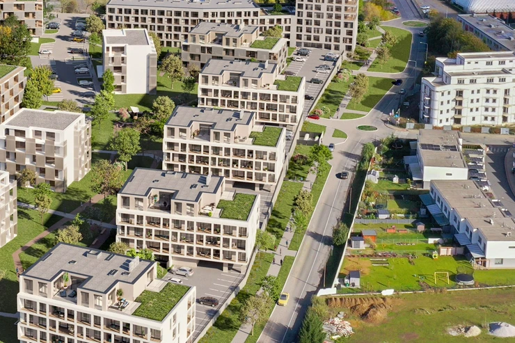 Standard apartment features include floating floors, interior doors with a height of 210 cm, modern bathroom fittings, windows with colored frames and triple glazing insulation, and preparation for external blinds. The apartments will have modern data cabling and an STA connection. The project will utilize smart heating technology that works with two heat sources – heat pumps and natural gas.