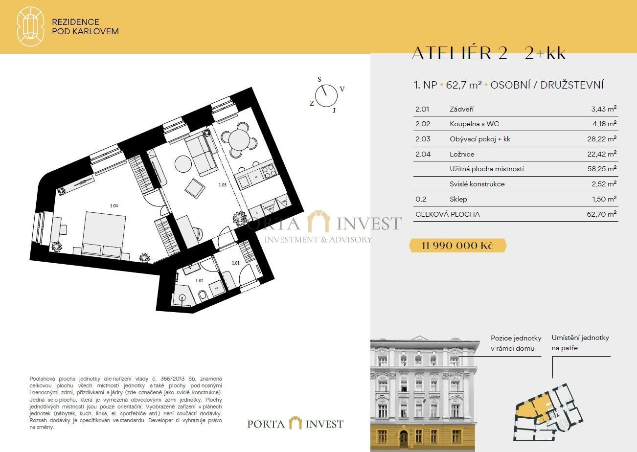 Are you looking for exceptional accommodation that combines a prestigious address, generous space, and breathtaking views? Discover a unique 2+kk studio with an area of 61.2 m² in the exclusive Pod Karlov Residence.