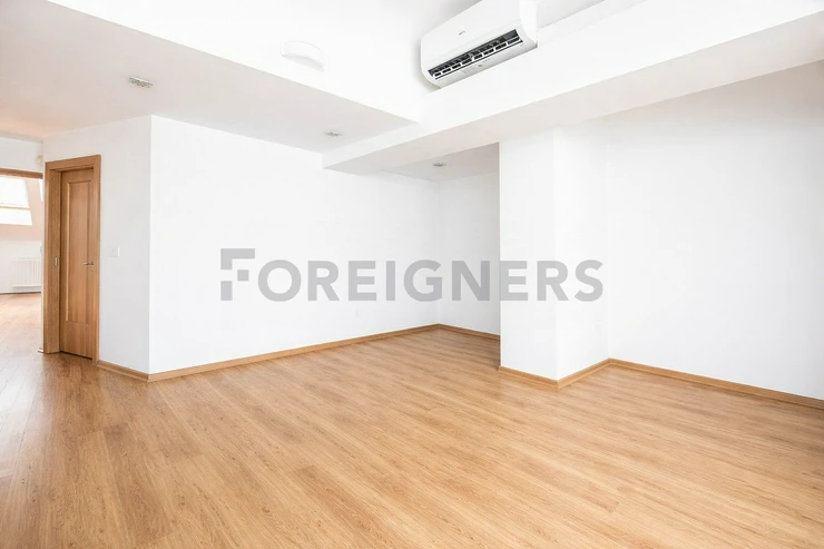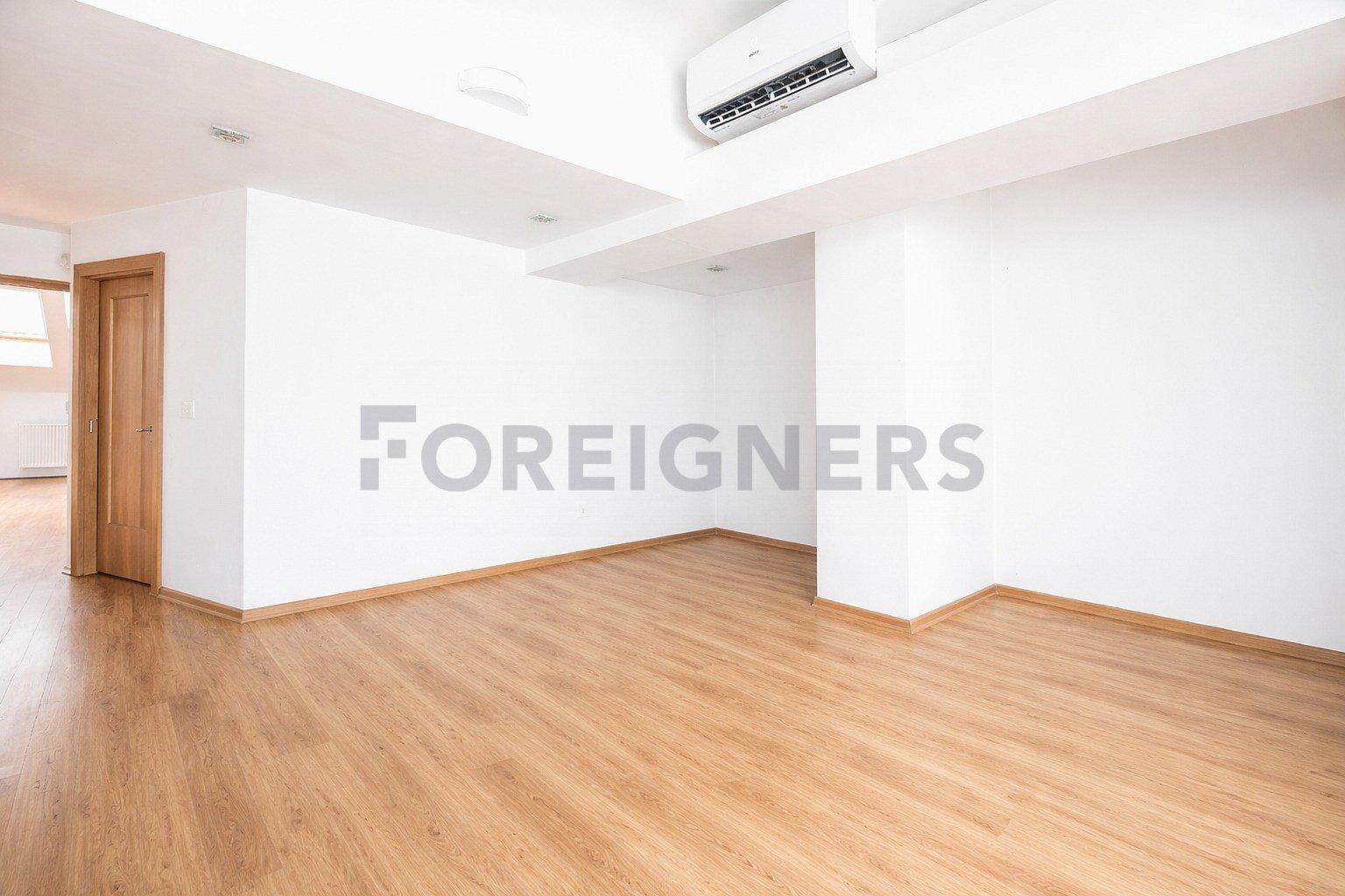 The apartment is equipped with air conditioning and high-quality wooden floors, which further enhance the pleasant atmosphere of the interior. The apartment also includes a cellar, providing additional practical storage space.