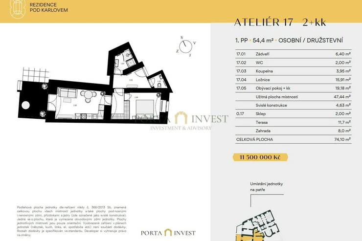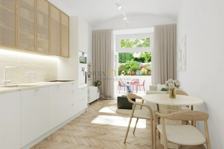 Are you looking for exceptional living that combines a prestigious address, generous space, and a charming terrace (11.7 m2) with a front garden (8 m2)? Discover a unique 2kk (52.4 m2) in the exclusive Residence Pod Karlovem.