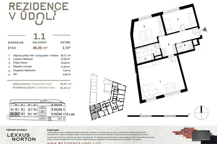 Possibility of subsidized mortgage 2,99%, for more information contact us.Exclusive offer of an investment one bedroom apartment for sale located in Hrdlorezy, Prague 9, which is part of the project Residence in the Valley with only 20 residential units and a closed outdoor area. Panoramic inspiring location in a quiet environment of the meanders of the Rokytka river and at the same time within easy reach of everything the city has to offer. The unit with a floor area of 51 sqm is located on the second floor of the building with elevator and consists of a large entrance hall with space for a built-in wardrobe, living room with preparation for the kitchen, bedroom, bathroom with spacious shower and toilet. Quality standard is a matter of course and the dominant feature of the space are the large windows with triple glazing, which provide plenty of peace and daylight. The added value of the apartment is the ceiling height of 2.75 m, which adds airiness and visually enlarges the space. The interior is equipped with ceramic tiles and tiles in the bathrooms, vinyl flooring in the living rooms, extra high doors (2.1 m), security entrance doors and a heat recovery system that controls the air ventilation. The apartment has a cellar. In close proximity to the housing you will find the valley along the Rokytka River, whose meanders are literally the perfect place that invites you to relax, take a walk with your four-legged companions or go for an evening run. Parks and orchards are a significant benefit of this location. Cycling enthusiasts will appreciate the almost 4 km long cycle path, which can take you to the neighbouring Hloubetin or even to the ZOO. There are also several sports and fitness centres in the area. There is a bus stop within a 3-minute walk, with connections to the city centre and other parts of Prague. For those who prefer to travel by car, there is a connection to the main road routes on site. Full civic amenities on site, including local shops, supermarkets or the Metropolitan University within walking distance.