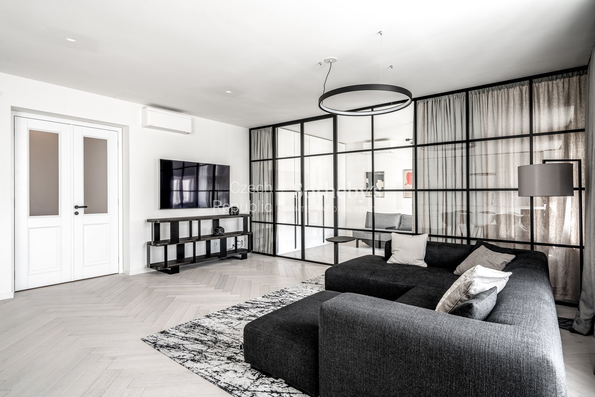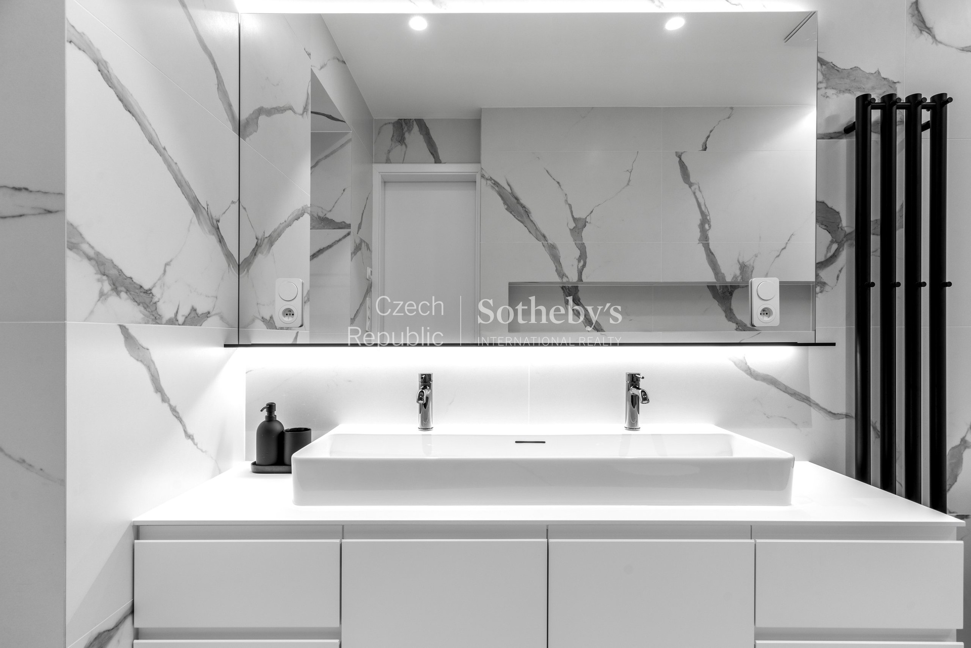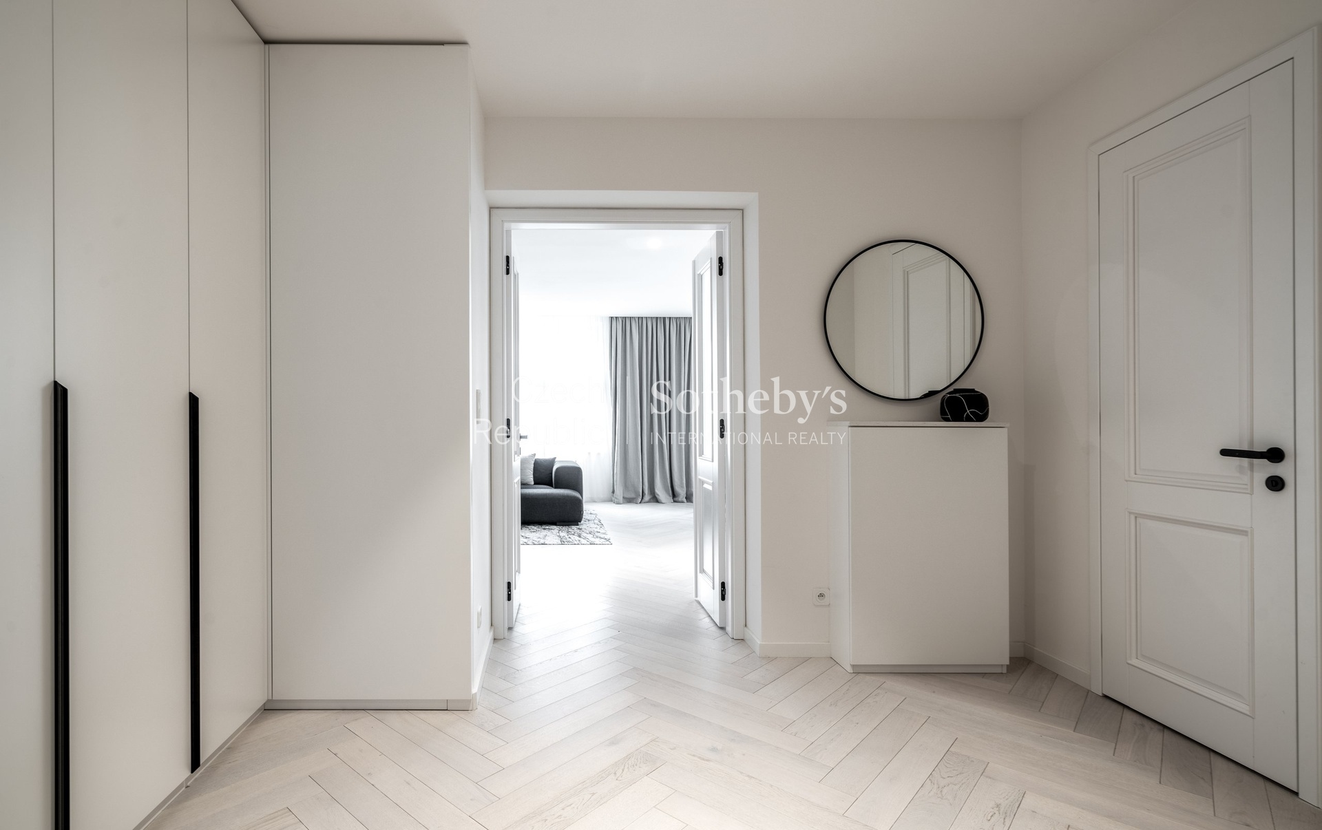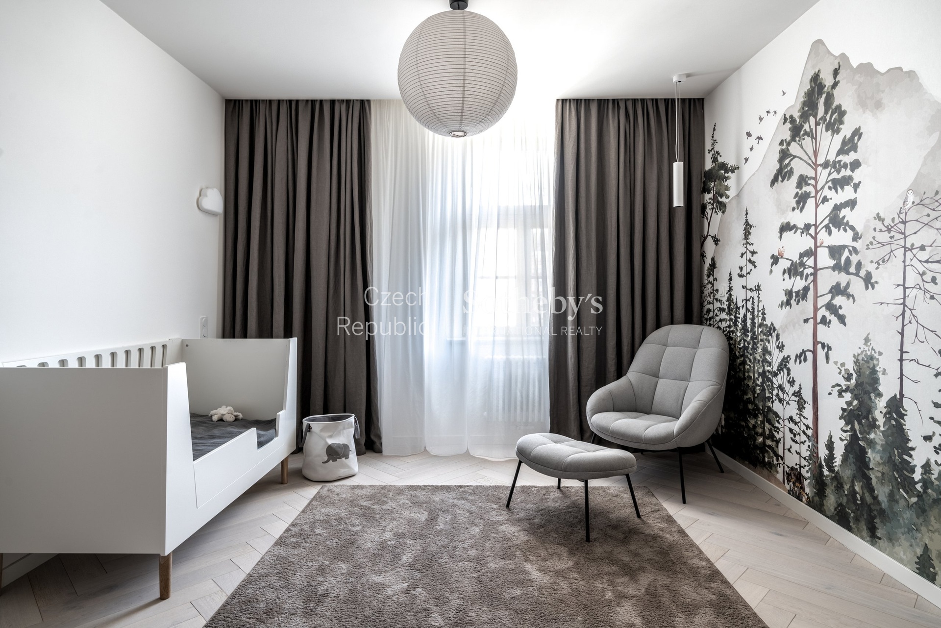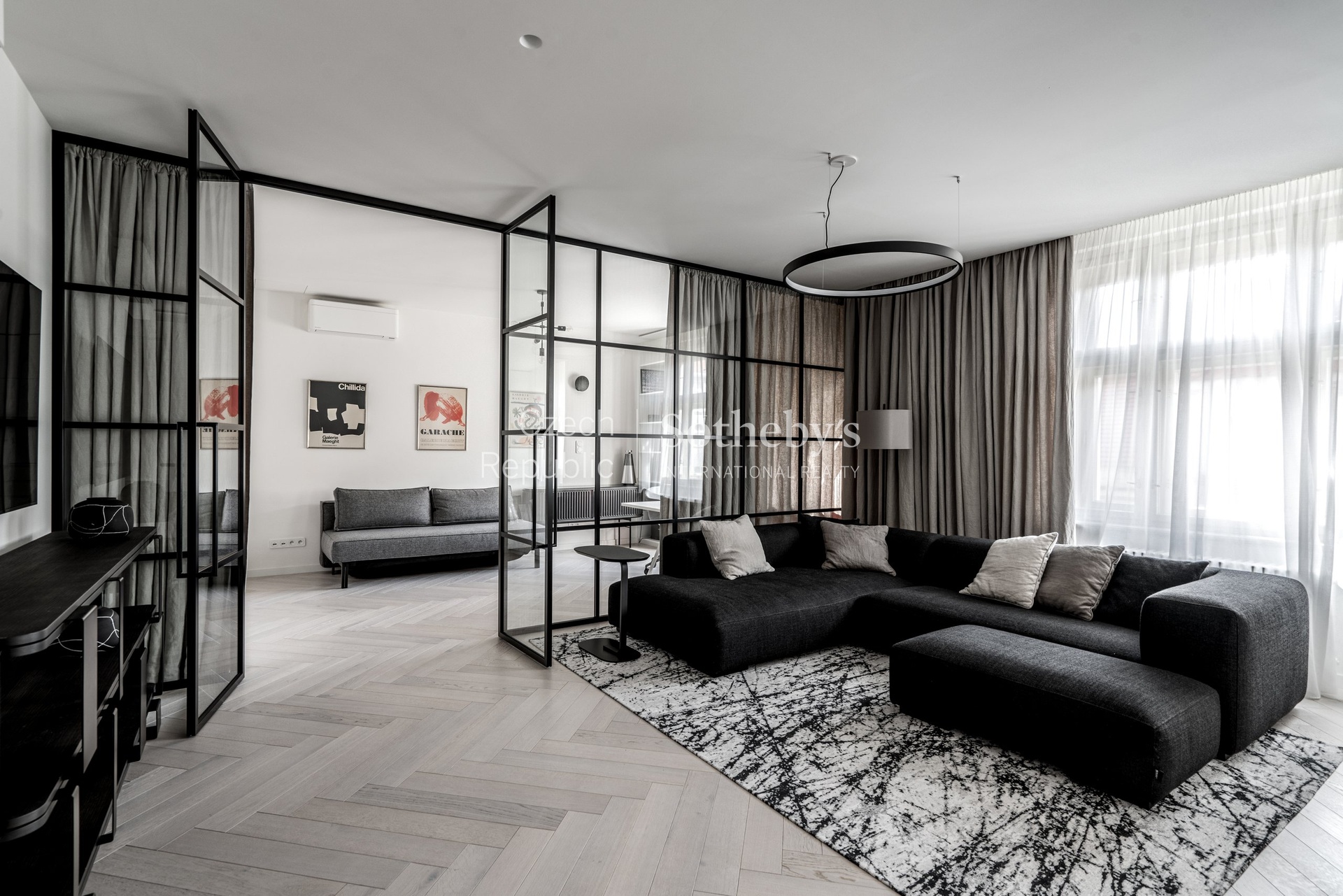 Sotheby's International Realty Czech Republic offers for sale a spacious and elegant apartment situated on the fifth floor of a completely renovated Art Nouveau house in Mánesova street, a prestigious location in Prague's Vinohrady district. The historic building from the end of the 19th century has undergone a sensitive and costly reconstruction, during which the original architectural details were preserved while modern technology and timeless design were introduced into the interior.