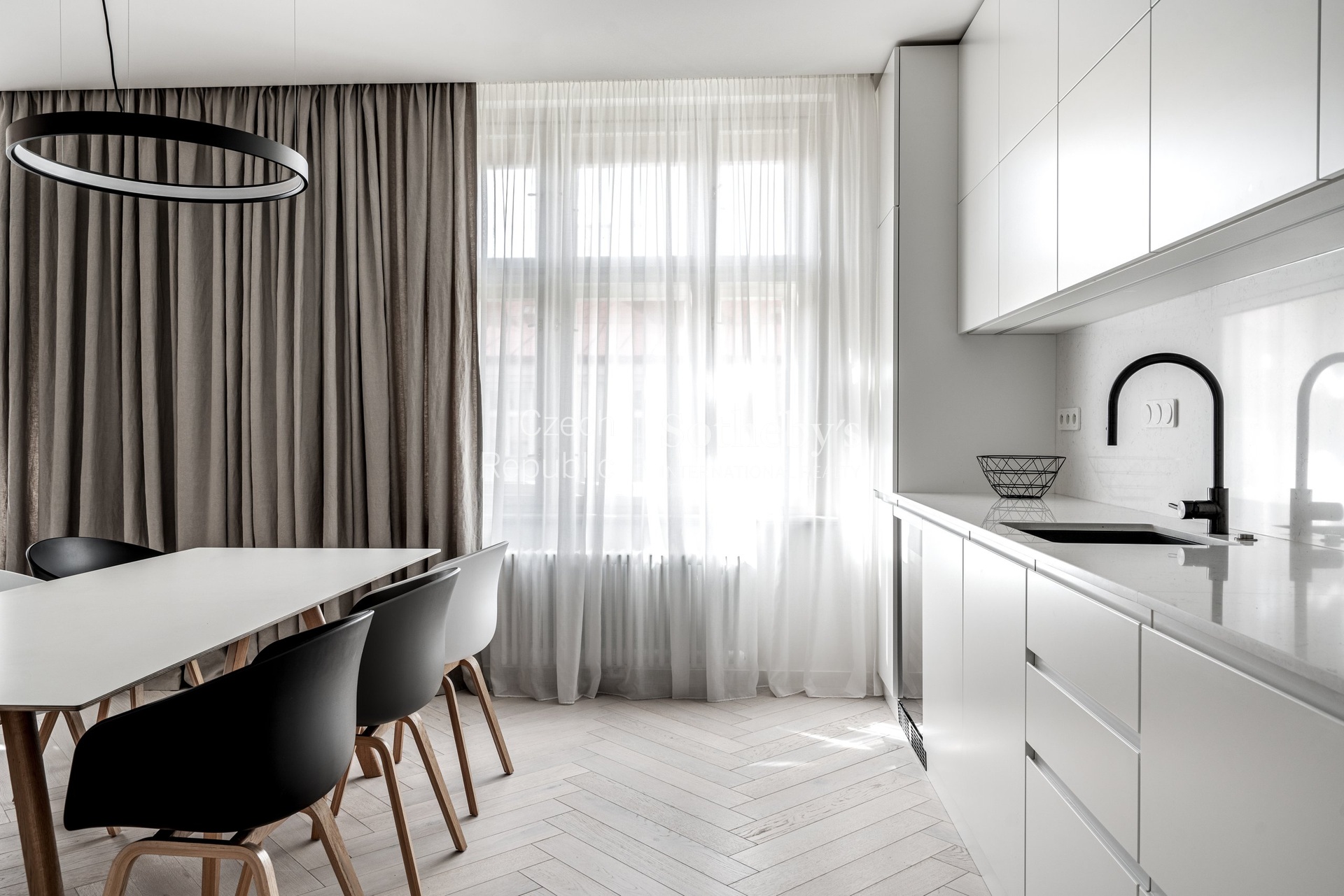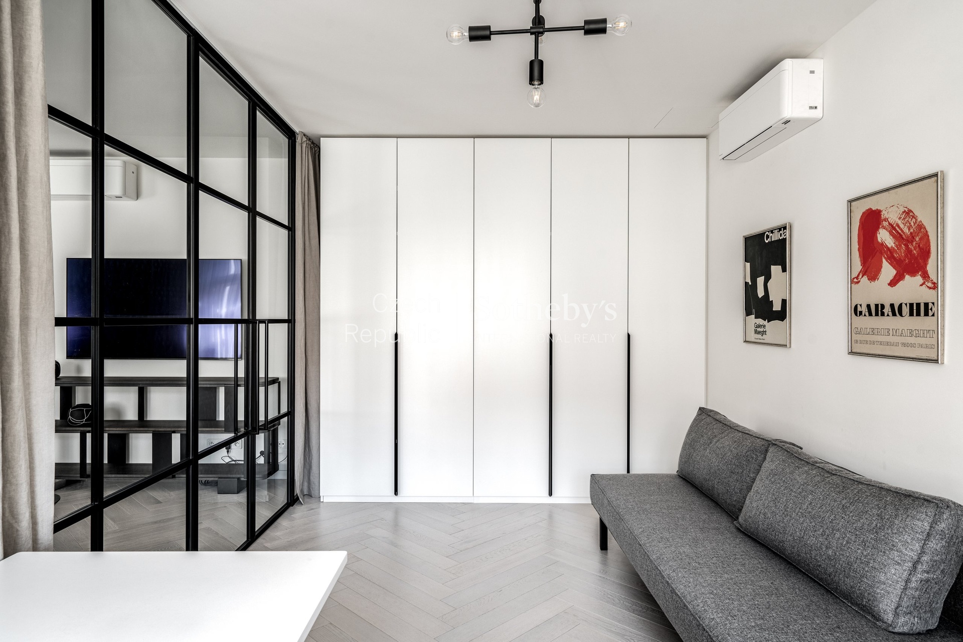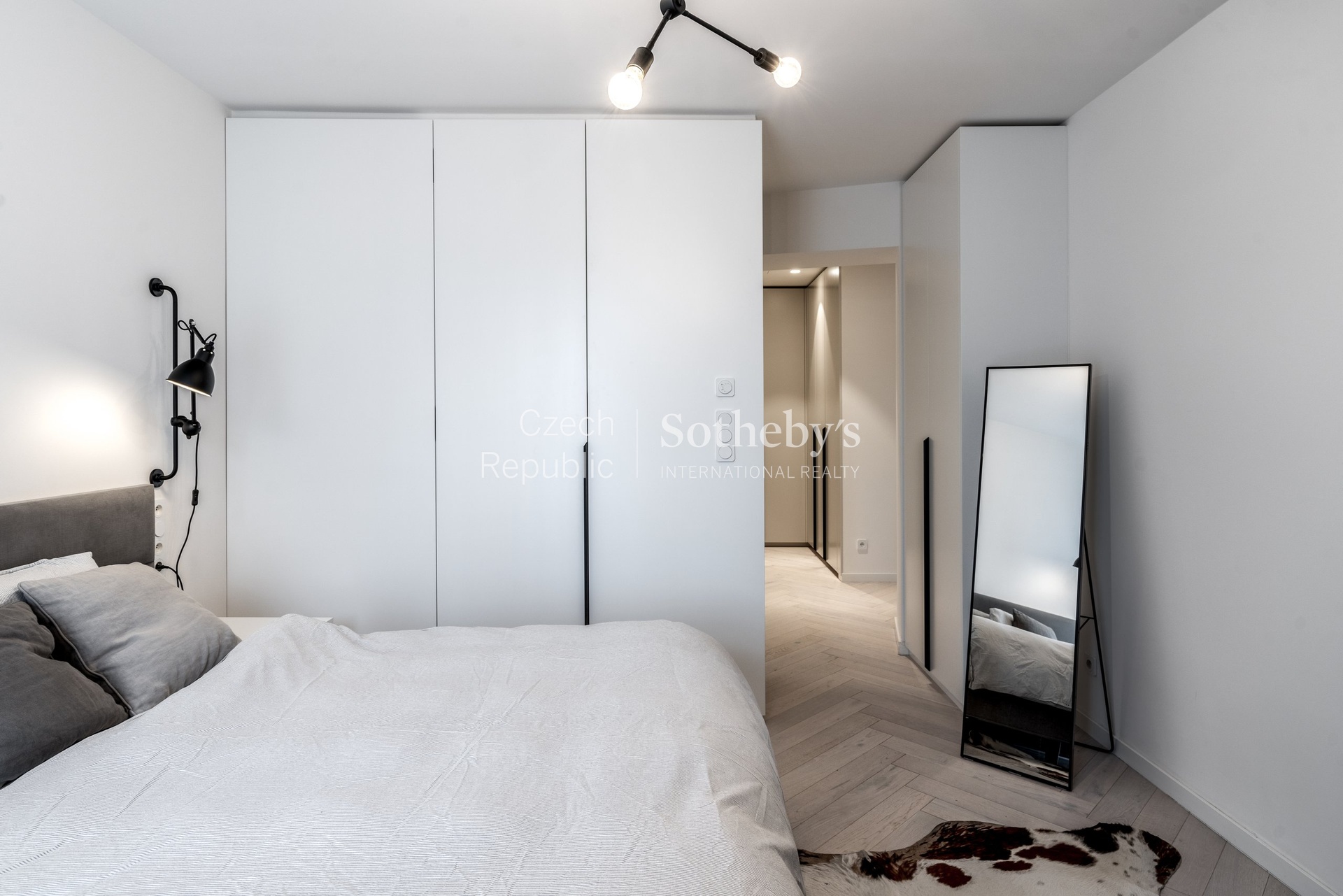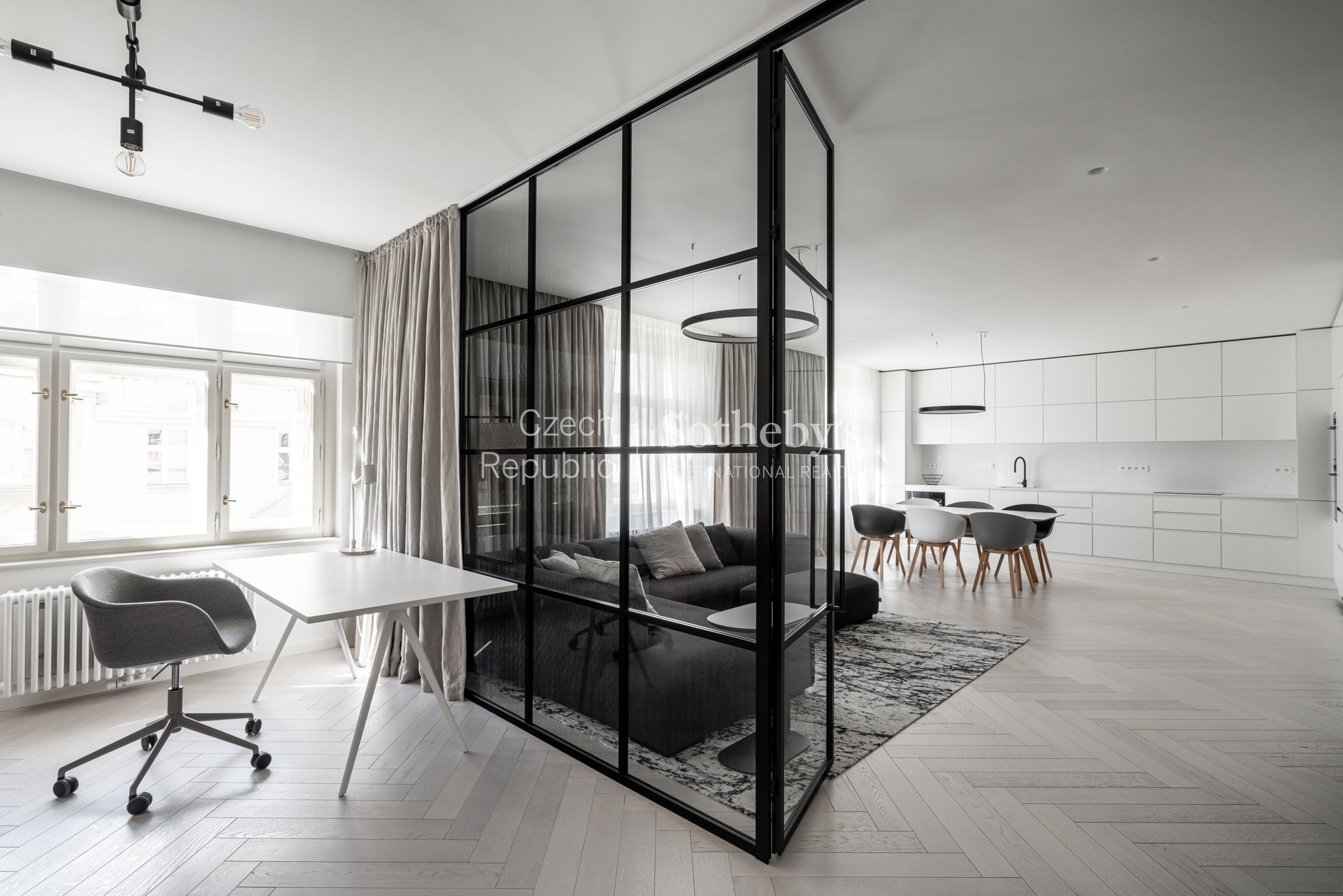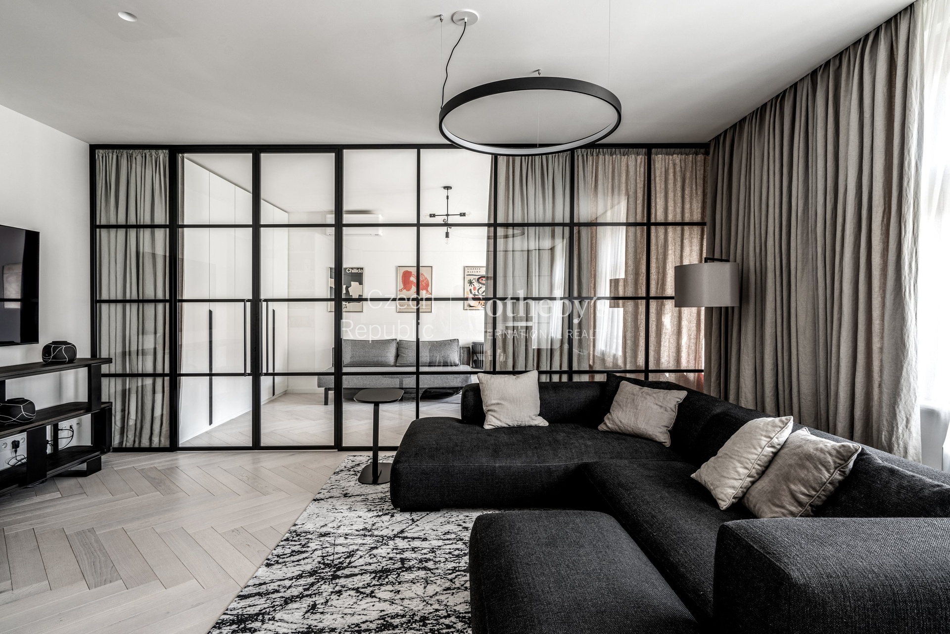 Sotheby's International Realty Czech Republic offers for sale a spacious and elegant apartment situated on the fifth floor of a completely renovated Art Nouveau house in Mánesova street, a prestigious location in Prague's Vinohrady district. The historic building from the end of the 19th century has undergone a sensitive and costly reconstruction, during which the original architectural details were preserved while modern technology and timeless design were introduced into the interior.