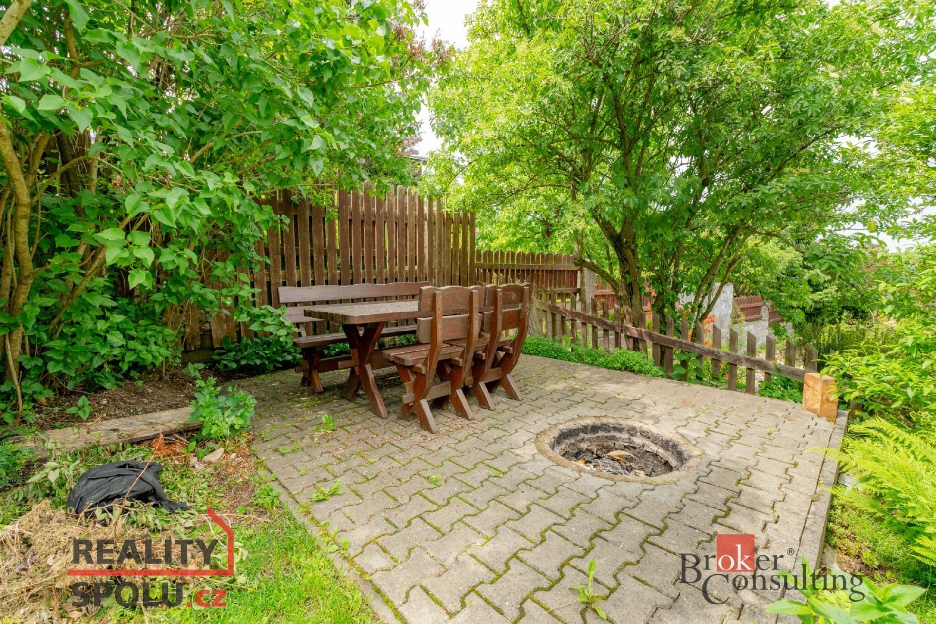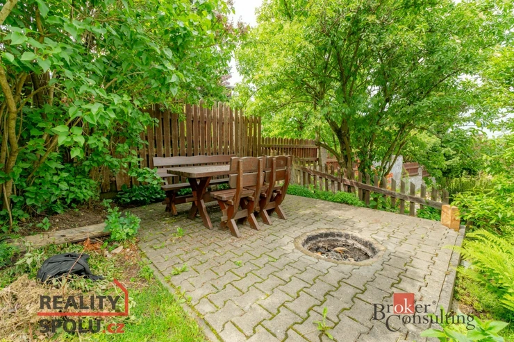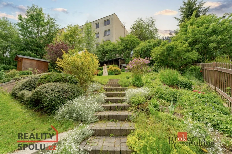 Nábytek je vyroben na míru, jeho vyklizení případně ponechání bude záležet na dohodě s kupujícím. K bytu patří i zahradní domek s pískovištěm a cihlový sklep v přízemí domu.