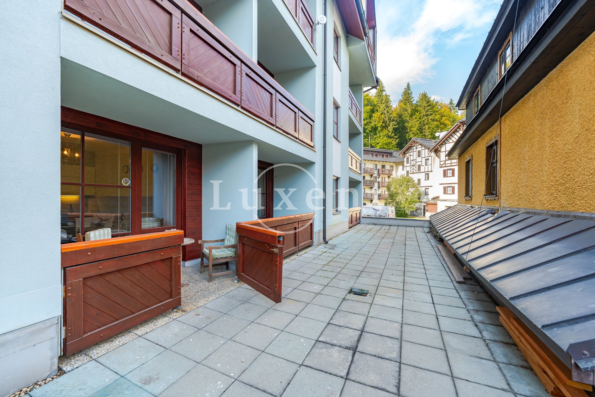 We offer for sale a fully furnished 2+kk apartment with a totl area of 50 m² on the 2nd floor of an apartment building located in the very centre of Špindlerův Mlýn, next to the popular Savoy Hotel.