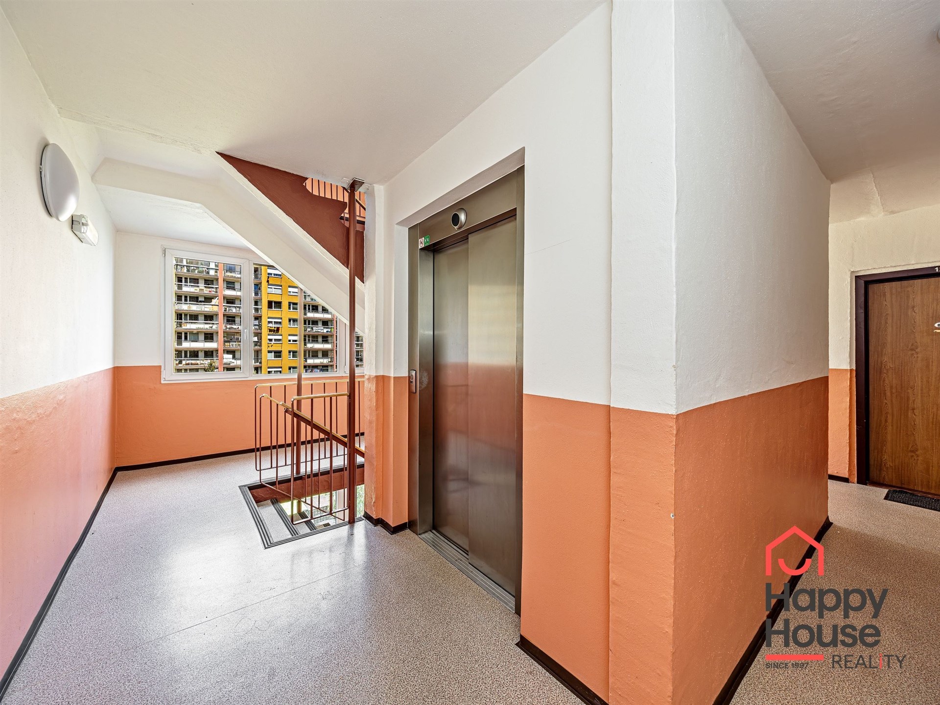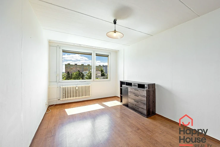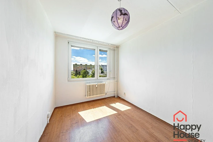 We offer for sale a spacious, bright, partially renovated one-bedroom apartment on the 3rd floor of a renovated and insulated panel house with an elevator in a pleasant location of Prague 12 in Kamýk.The apartment is unfurnished and features an entrance hall, living room with a kitchenette (including a TV cabinet + coffee table), a bedroom (with 2 wardrobes), a bathroom with a small bathtub, and a separate toilet. The kitchen is equipped with a ceramic hob and an electric oven. The floors are covered with laminate floating floors and tiles. All windows have both internal and external blinds. The apartment comes with a cellar cubicle.