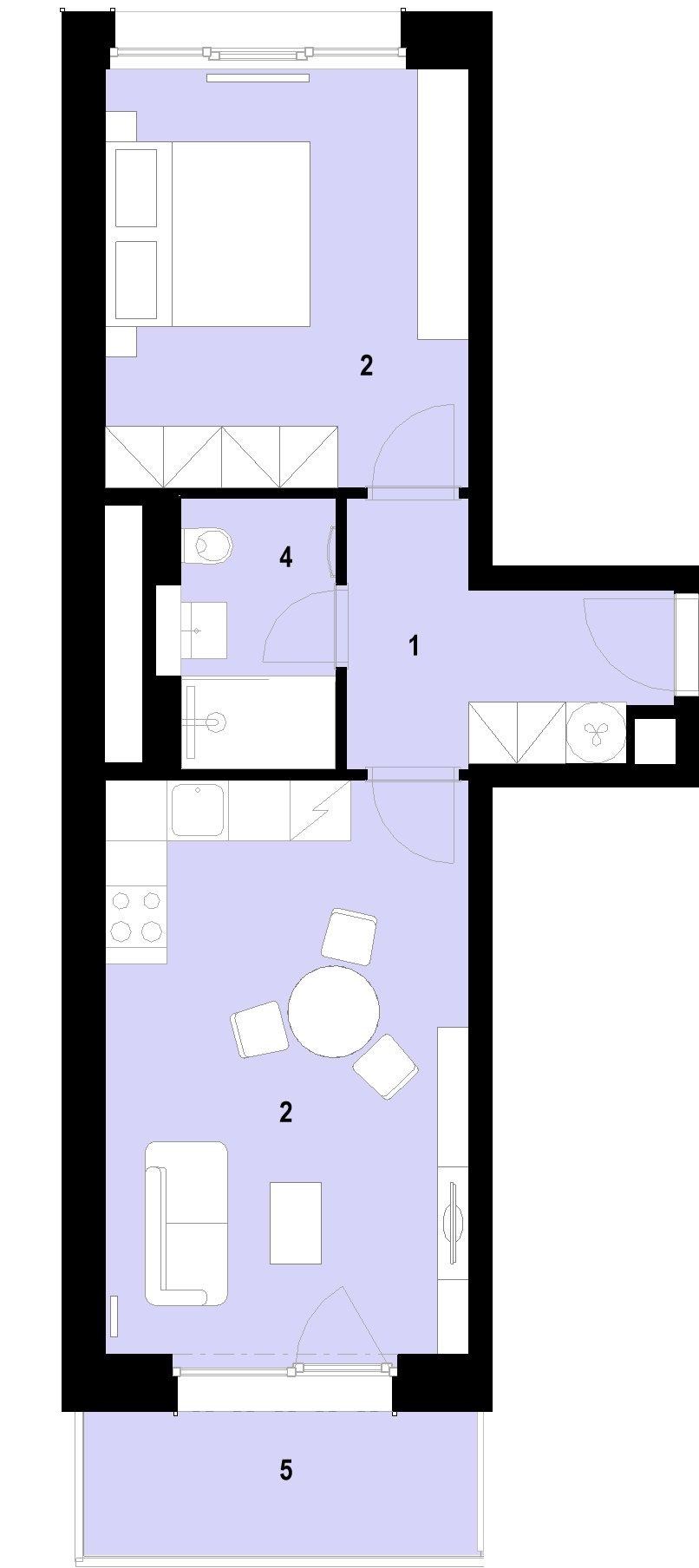 Unit no. 1204 with a one-bedroom layout and a total area of 52.8 m² on the 2 floor will offer you a harmonious space for living, whether you are looking for your own apartment or are a couple starting a joint chapter. The airy living room with a kitchenette freely flows into the bedroom, which is complemented by an elegant bathroom with a shower and toilet. Thanks to its orientation to the N, S, the apartment enjoys an ample amount of natural light. The unit includes a balcony, perfect for enjoying your morning cup of coffee in the fresh air. A cellar and a parking space must be purchased for each unit. The apartment will be ready to move into immediately with finished floors, a fitted bathroom, and a space for a kitchen unit. Standards include high quality materials, triple-glazed windows, and in selected units, preparation for outdoor shading.
