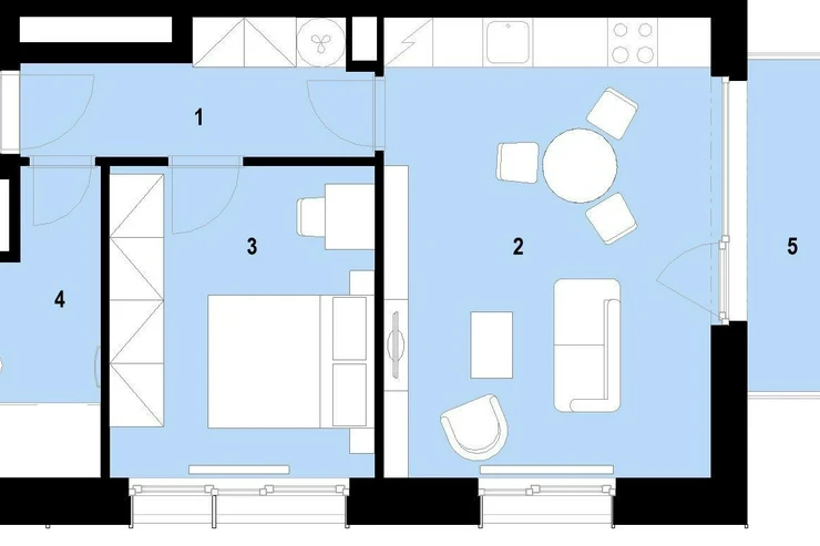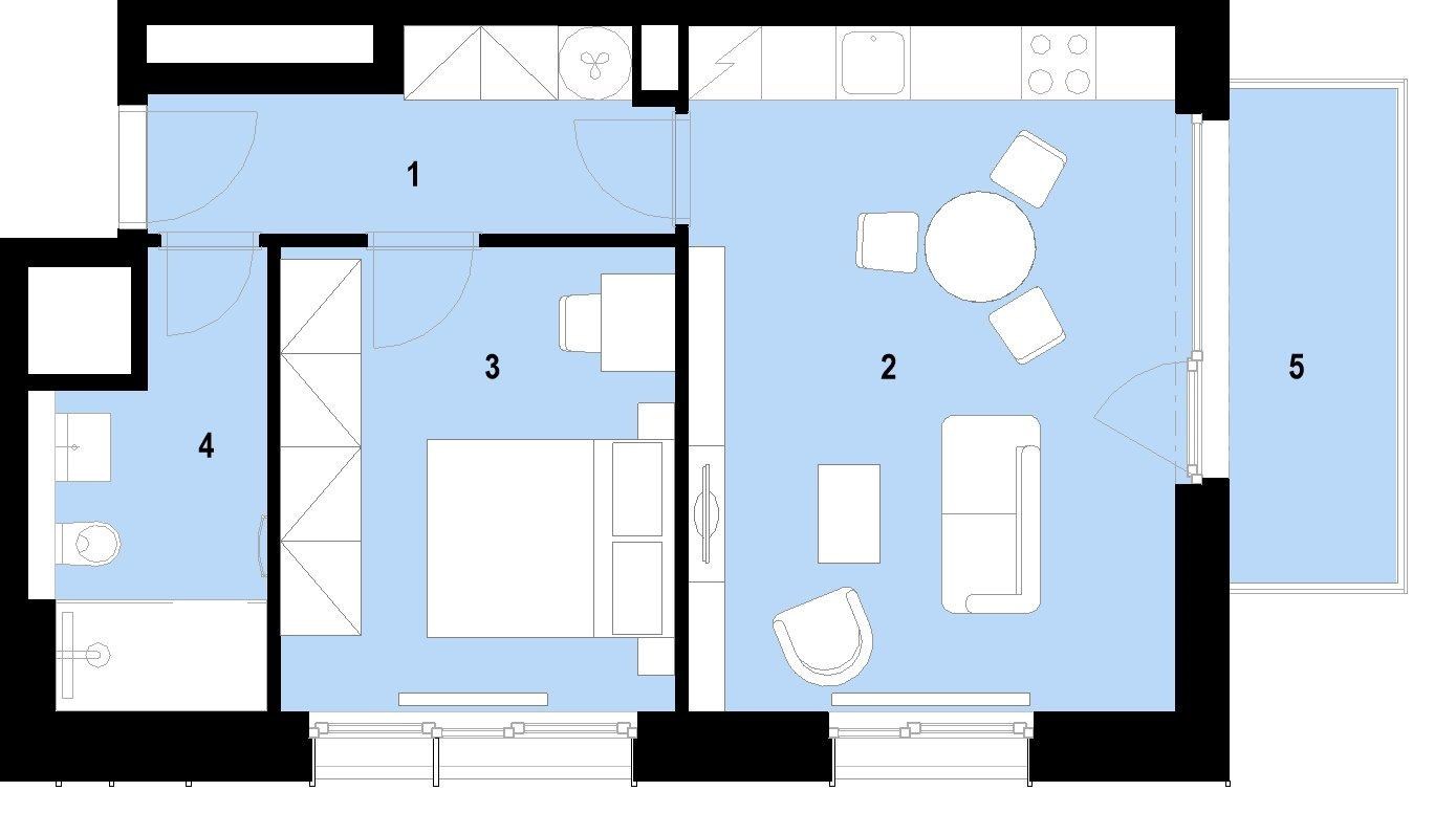 Unit no. 2606 with a one-bedroom layout and a total area of 53.7 m² on the 6 floor will offer you a harmonious space for living, whether you are looking for your own apartment or are a couple starting a joint chapter. The airy living room with a kitchenette freely flows into the bedroom, which is complemented by an elegant bathroom with a shower and toilet. Thanks to its orientation to the S, E, the apartment enjoys an ample amount of natural light. The unit includes a balcony, perfect for enjoying your morning cup of coffee in the fresh air. A cellar and a parking space must be purchased for each unit. The apartment will be ready to move into immediately with finished floors, a fitted bathroom, and a space for a kitchen unit. Standards include high quality materials, triple-glazed windows, and in selected units, preparation for outdoor shading.