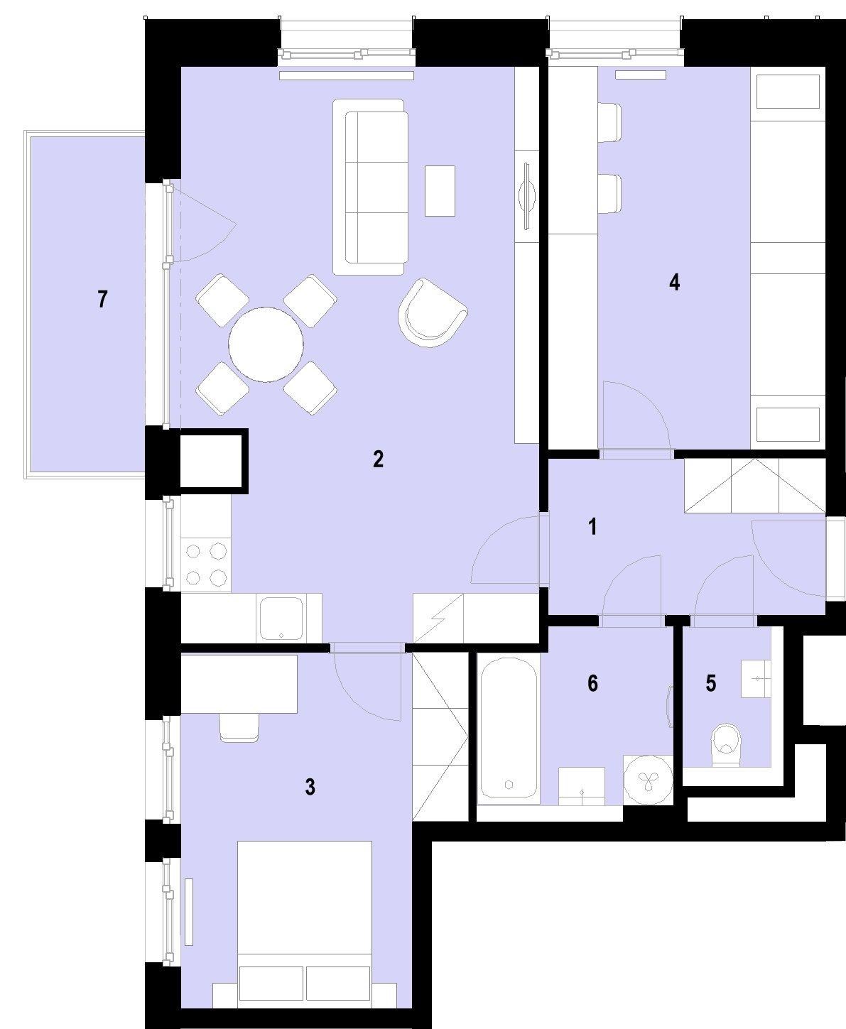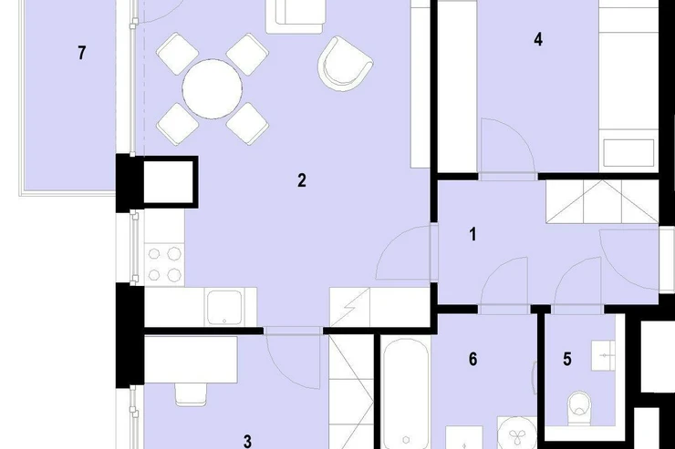 Unit no. 1701 with a two-bedroom layout and a total area of 79.6 m² combines practicality, style, and comfort. The dominant feature of the apartment on the 7 floor is a large living room with a kitchenette, which directly invites you to meet, cook, and relax. Two separate bedrooms provide space for peaceful sleeping, a study, or a children's room. The bathroom is equipped with a modern bathtub and there is also a separate WC for maximum comfort in everyday life. Thanks to its orientation to the N, W, the interior is bright, pleasant and has an airy feel. The unit includes a balcony with an area of 0 m², ideal for relaxing evenings or for enjoying breakfast in the fresh air. The apartment will be ready to move into immediately with finished floors, a fitted bathroom, and a space for a kitchen unit. Standards include high quality materials, triple-glazed windows, and in selected units, preparation for outdoor shading.