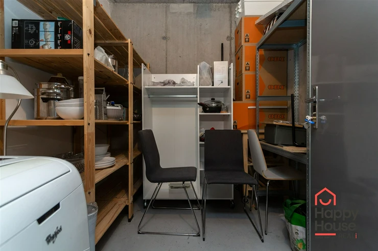 The apartment is fully furnished and ready for immediate move-in or rental. The kitchen is equipped with built-in appliances, including a ceramic cooktop, convection oven, microwave, extractor hood, fridge with freezer, and dishwasher. The bathroom features a bathtub and heated towel rail, with a separate toilet. A storage room with washing machine connection is also available.