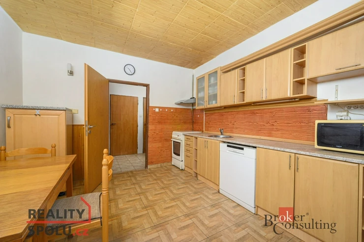 Dále je k dispozici velký sklep, prostorný kumbál a podíl na půdě. Celková užitná plocha včetně těchto prostor přesahuje 100 m².