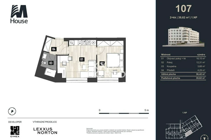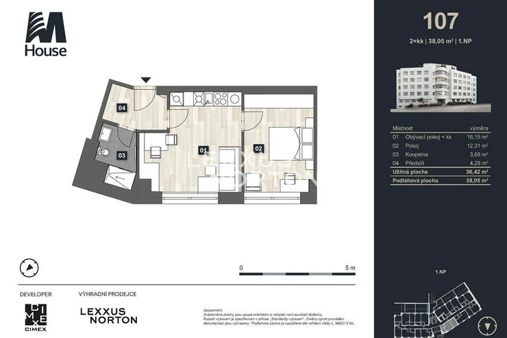 Discover modern and stylish living in this single bedroom accommodation unit (45 sqm) for sale, part of the newly emerging M-House residential project in Prague's Vrsovice district. This project emphasizes comfort and functionality, making it an ideal choice for individuals or couples.The unit is located on the first floor and features a practical and well-utilized floor plan. From the entrance hallway, you smoothly transition into a spacious living room with an integrated kitchen. The accommodation unit also includes a cozy bedroom and a modern bathroom equipped with a toilet and shower. The well-thought-out layout creates a calm and harmonious atmosphere. A cellar, which must be purchased separately, is also available. Additionally, a parking space can be purchased with the unit.The attractive location near Kubanske Square, at the border of Vrsovice and Vinohrady, perfectly combines a peaceful lifestyle with all the conveniences of city living. The strategic placement of the M-House residential project near major transport routes and public transport stops allows for quick and easy access not only to the city center but also to other parts of Prague. The surrounding area offers a wealth of shops, supermarkets, primary and nursery schools, and medical facilities. Food enthusiasts will find a paradise here, with countless cozy cafes, excellent restaurants, and stylish bistros. Nearby, Ruth Bondy Park and the newly emerging Drazni Promenade, inspired by New York's famous High Line, offer ideal spots for enjoying nature and outdoor activities. Sports enthusiasts can take advantage of a wide range of facilities for all generations – from a swimming pool to an ice rink, outdoor sports grounds, and Fortuna Arena.