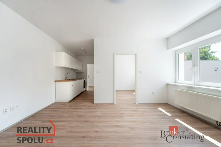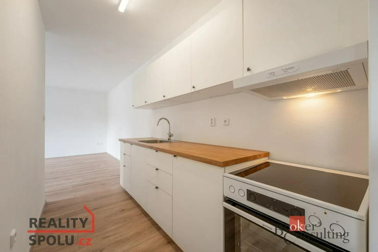 Mezi novinky v bytě patří moderní kuchyňská linka, vinylová podlaha, kompletní rozvody inženýrských sítí, zrenovovaná koupelna a nové interiérové i vstupní dveře.